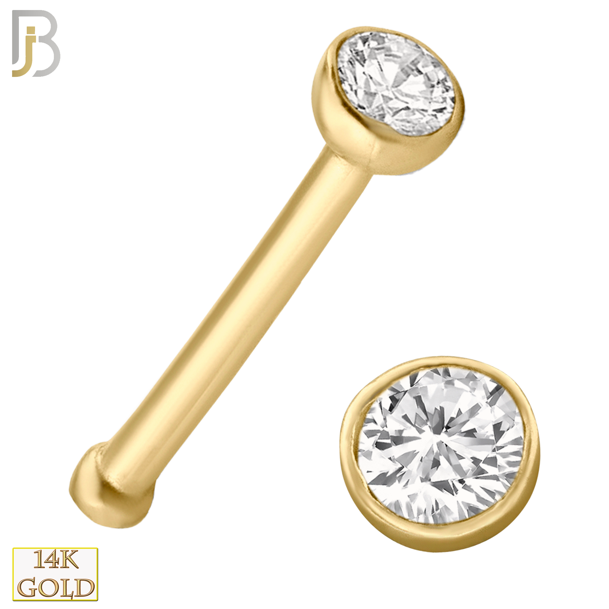 14k Yellow Gold Nose Bone Prong Set Round CZ