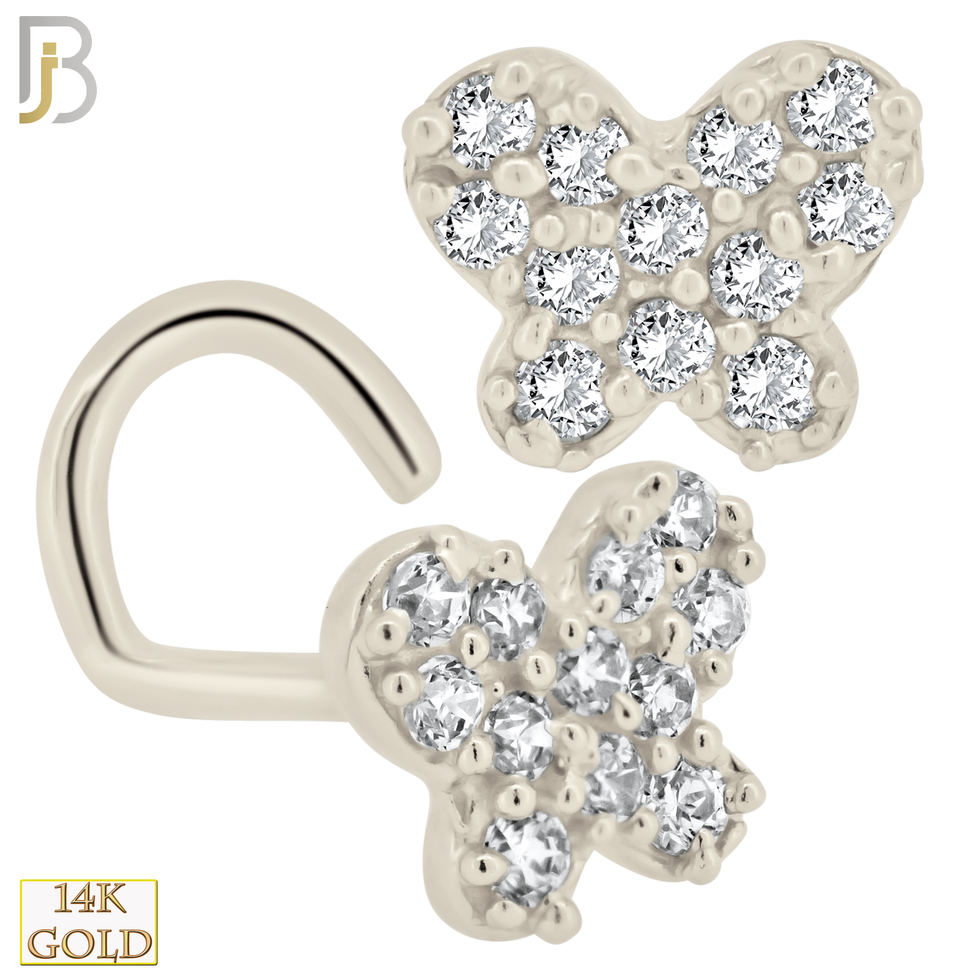 14k Yellow Gold Butterfly Shape with CZ Screw Nose Ring