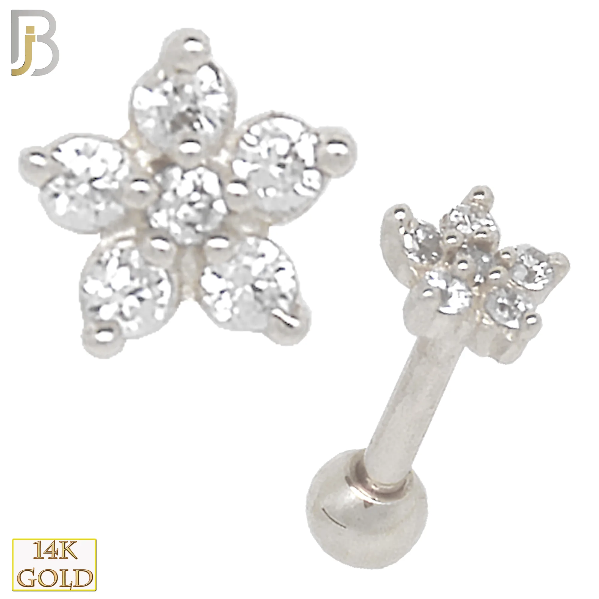 14k Solid Gold Star Shape Flower Design Tragus Barbell Cartilage Earrings Piercing Screw Ball