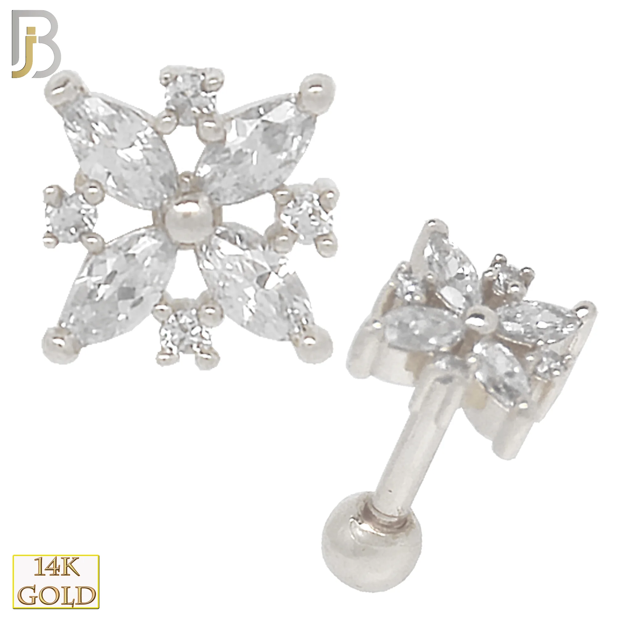 14k Solid Gold Screw Back Snow Flake with CZ Tragus Barbell Cartilage Earring