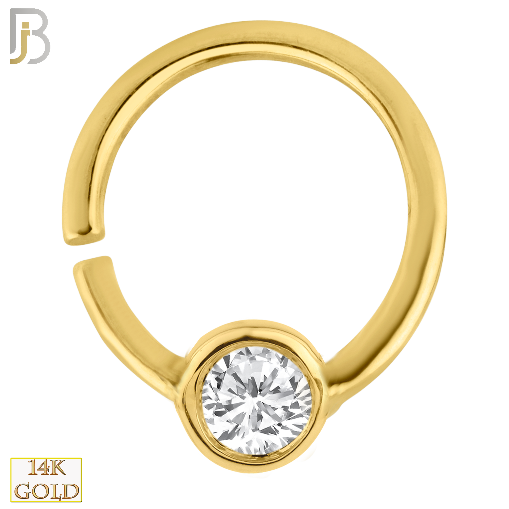 14-TH11 – 14K Solid Gold Single CZ in Bezel Setting Tragus Hoop