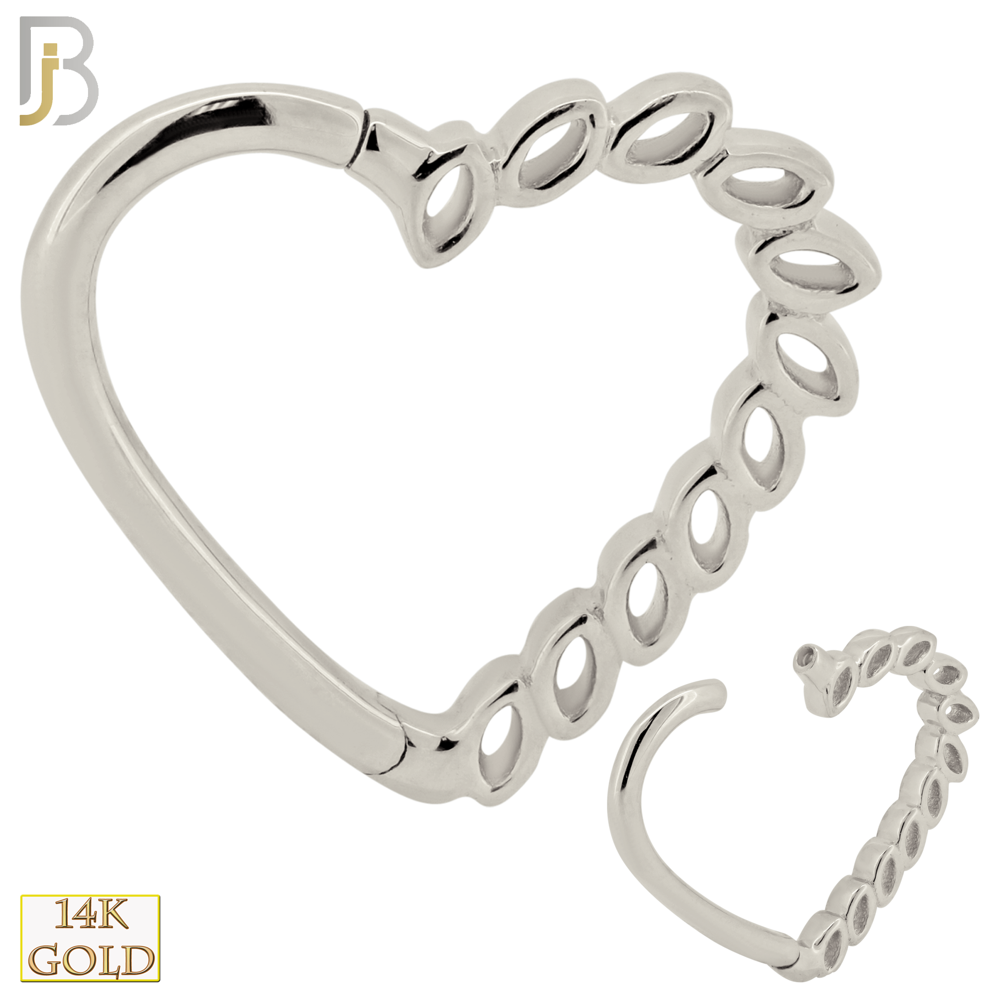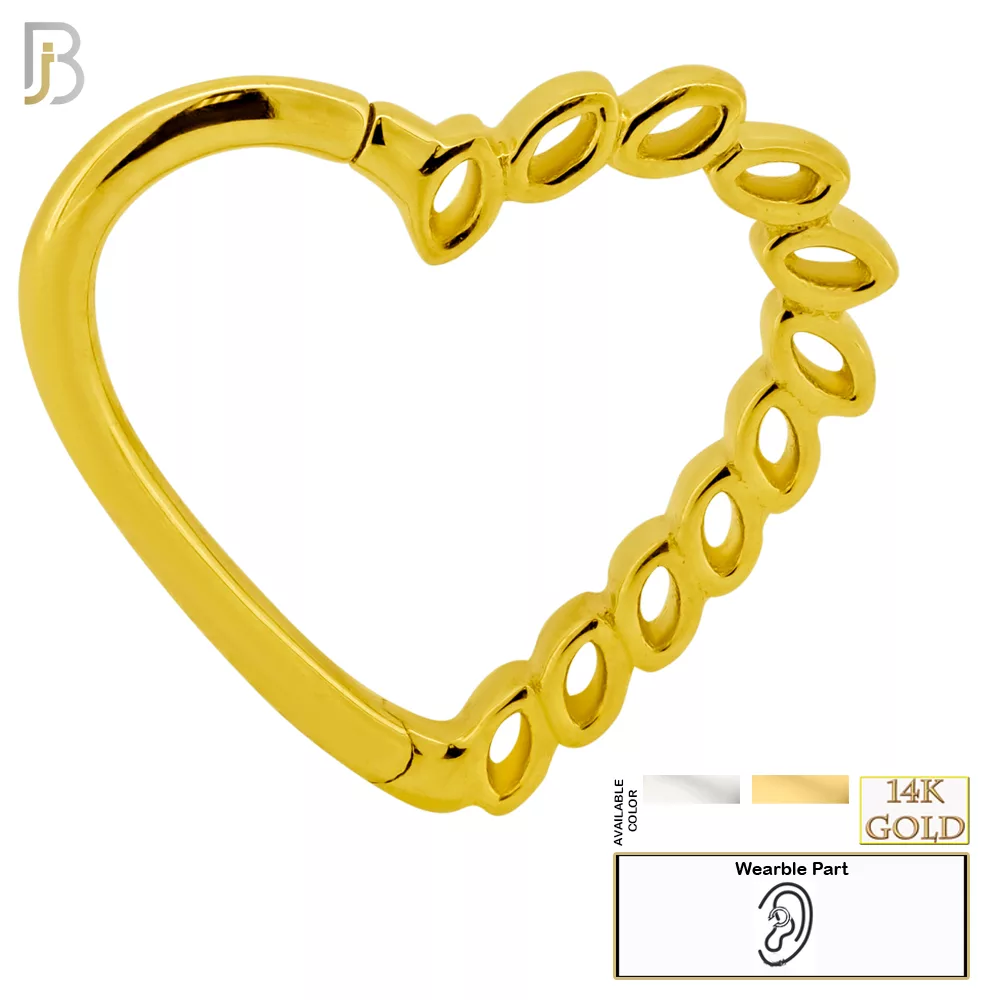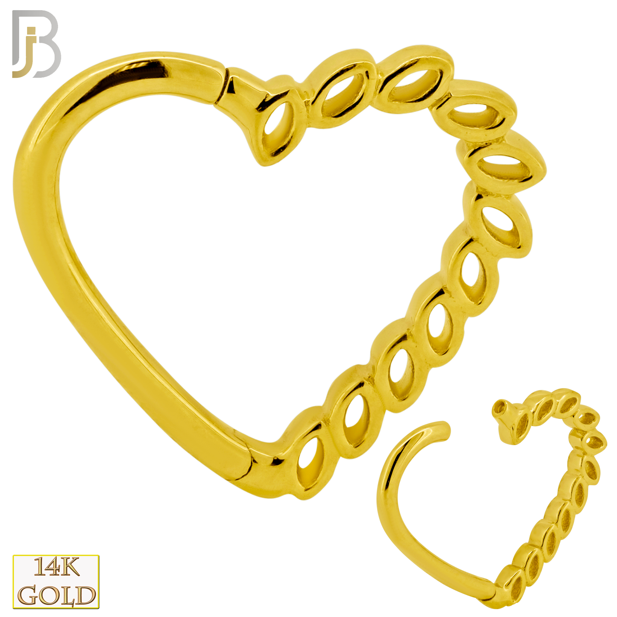 14K Yellow Gold 18g Thickness Hollow Heart with Half is Marquise Shaped Design Hinged Hoop