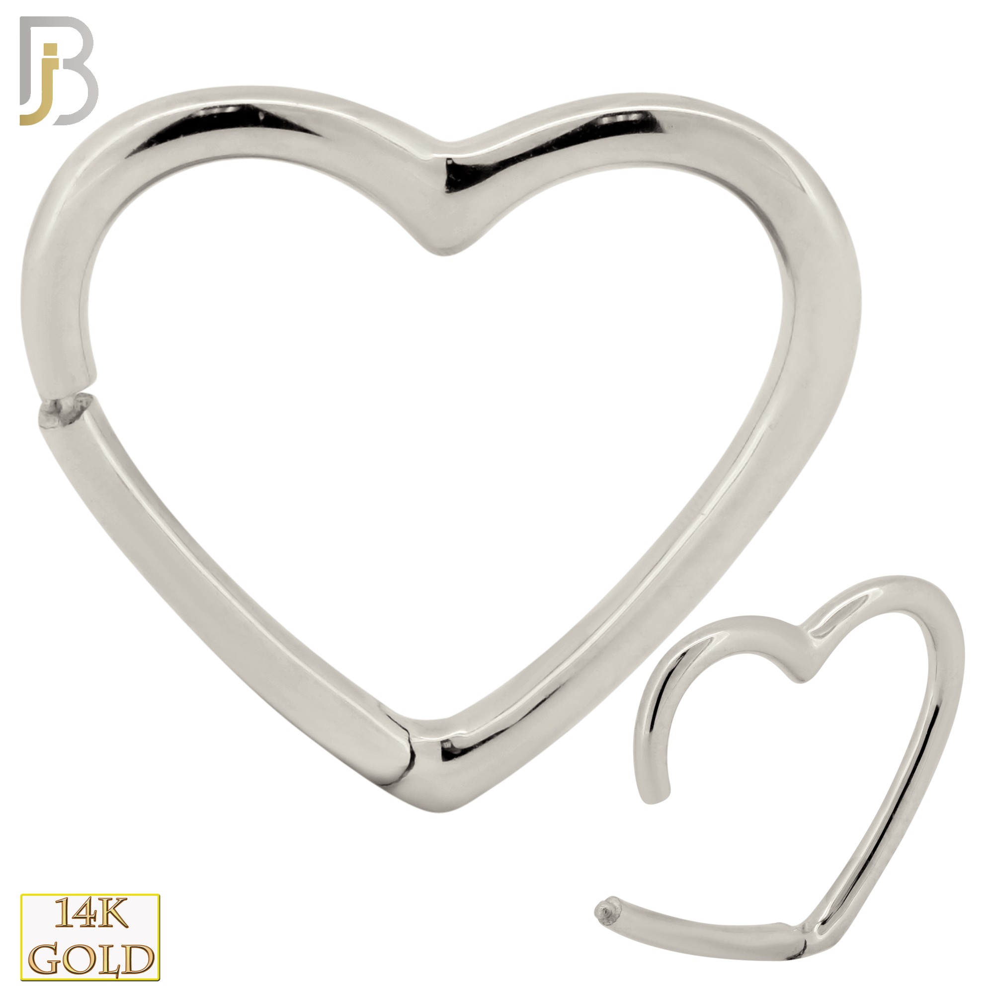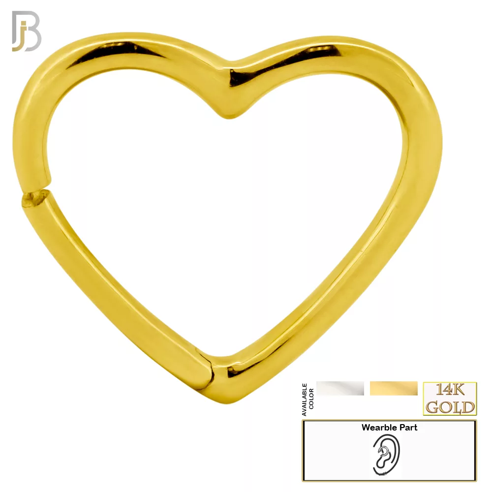14K Yellow Gold 18g Thickness Plain Hollow Heart Hinged Hoop