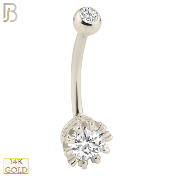 14k Solid Gold Banana Belly Ring with 7mm Round Design