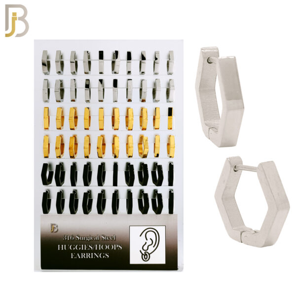 316L Surgical Steel Hexagon Shapes Hoops Earrings Pack of 30 Pairs