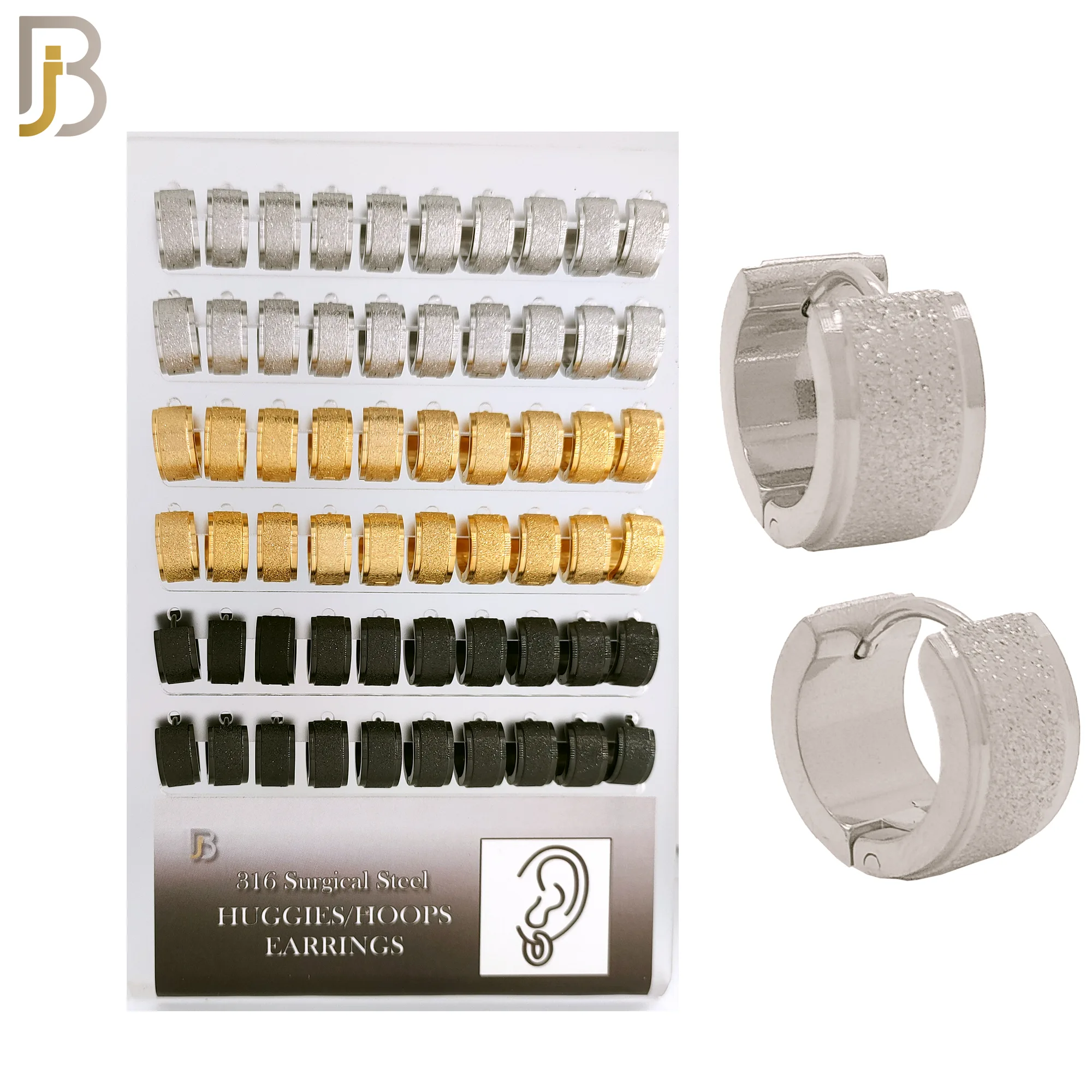 316L Surgical Steel Sandpaper Curved with Line in Both Side Huggies Hoops Earrings Pack of 30 Pairs