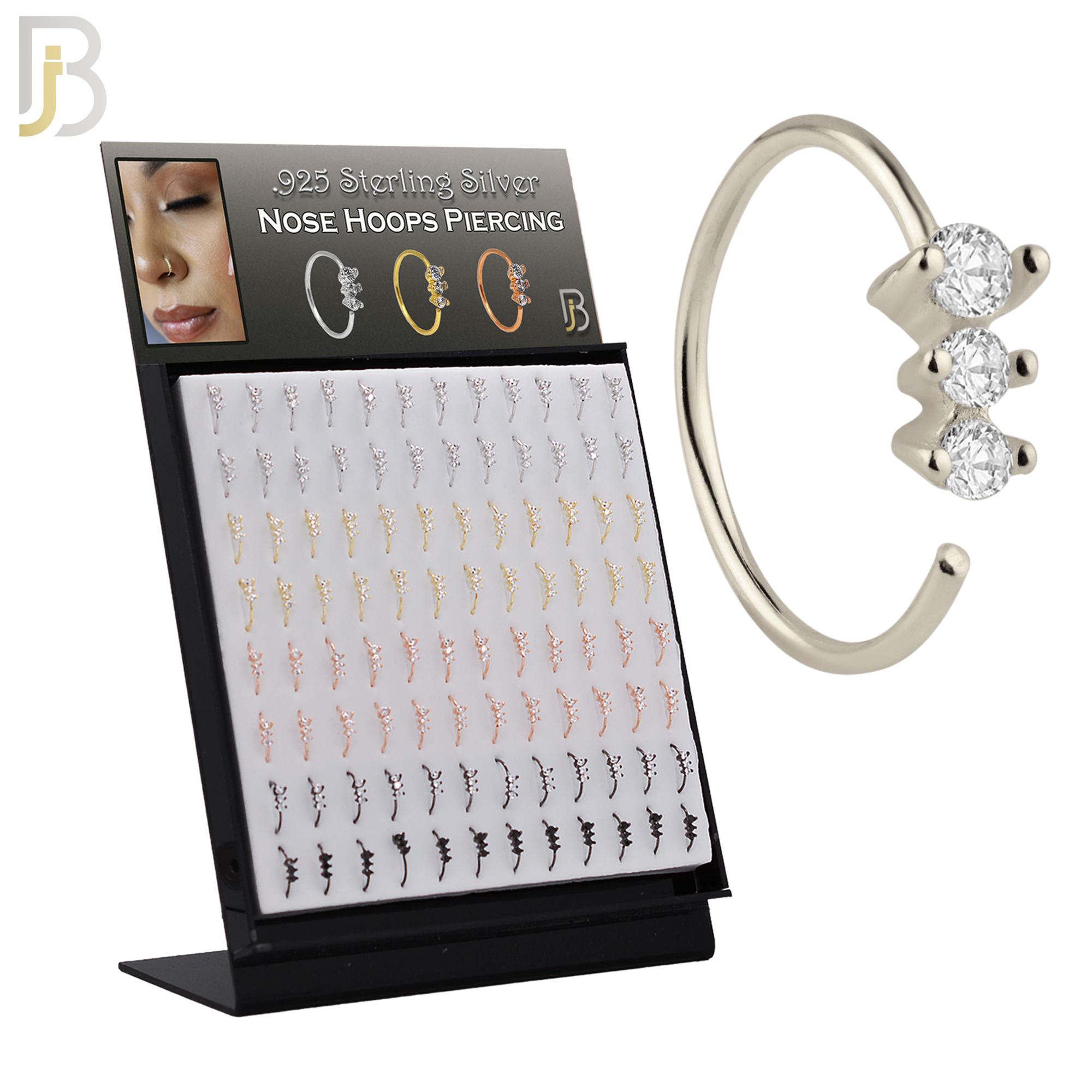 925 Sterling Silver 22g Thickness 3 Prong CZ Hoops Piercing Pack of 96