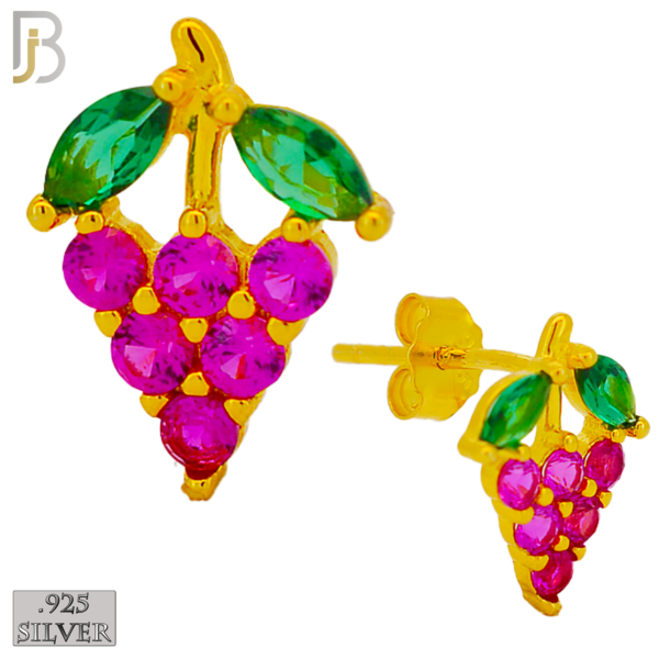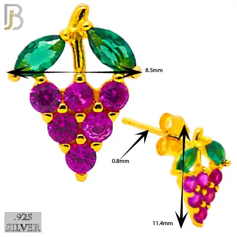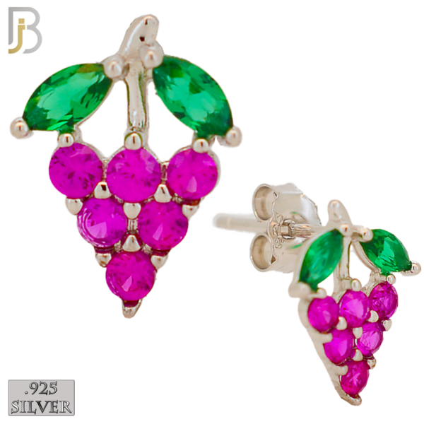 .925 Sterling Silver Grapes Design Earring Stud with Zircon