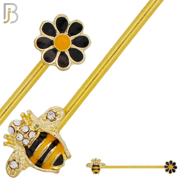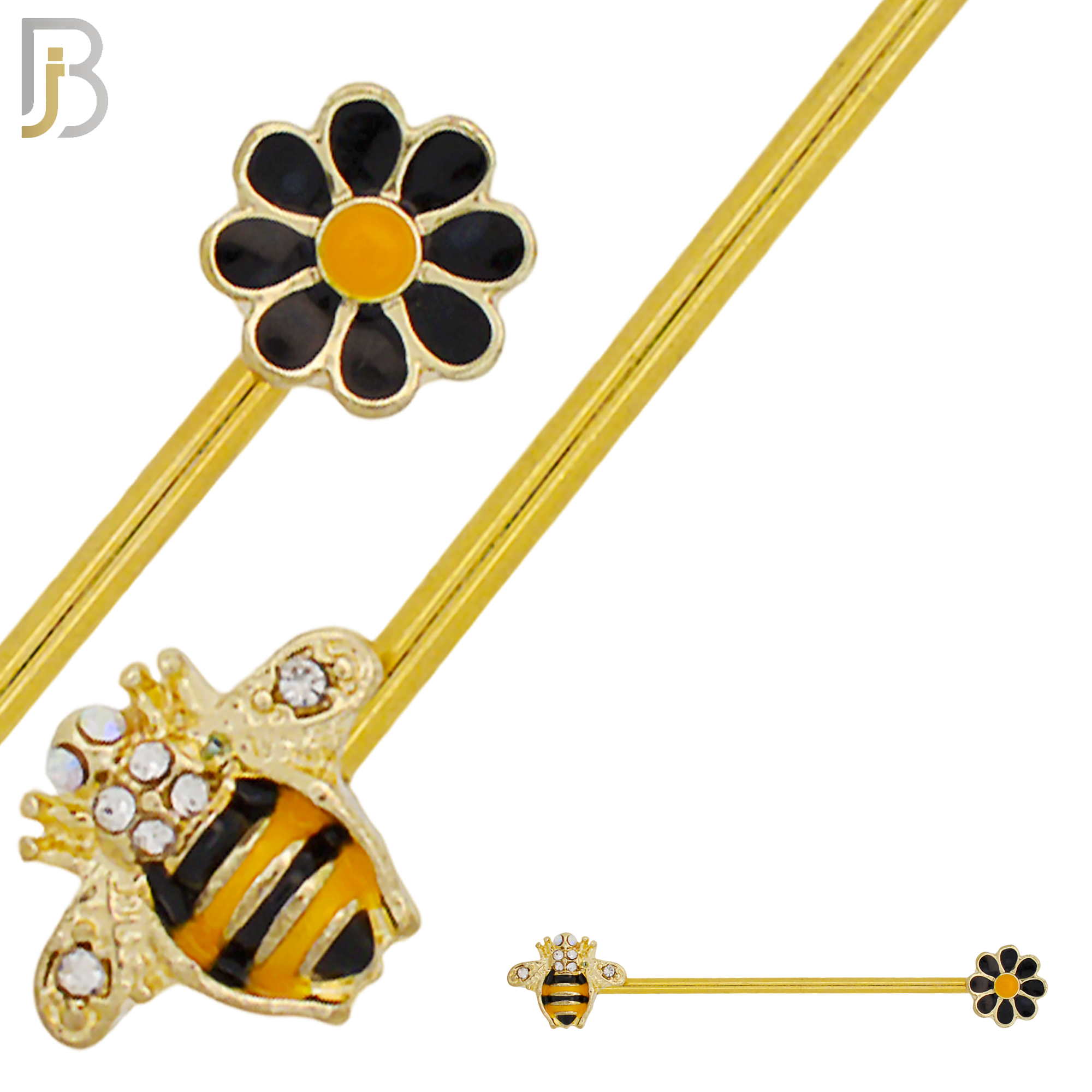 316L Surgical Steel Bee with Flower Design with Zircon Barbell Industrial