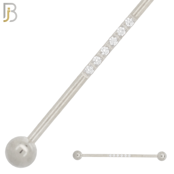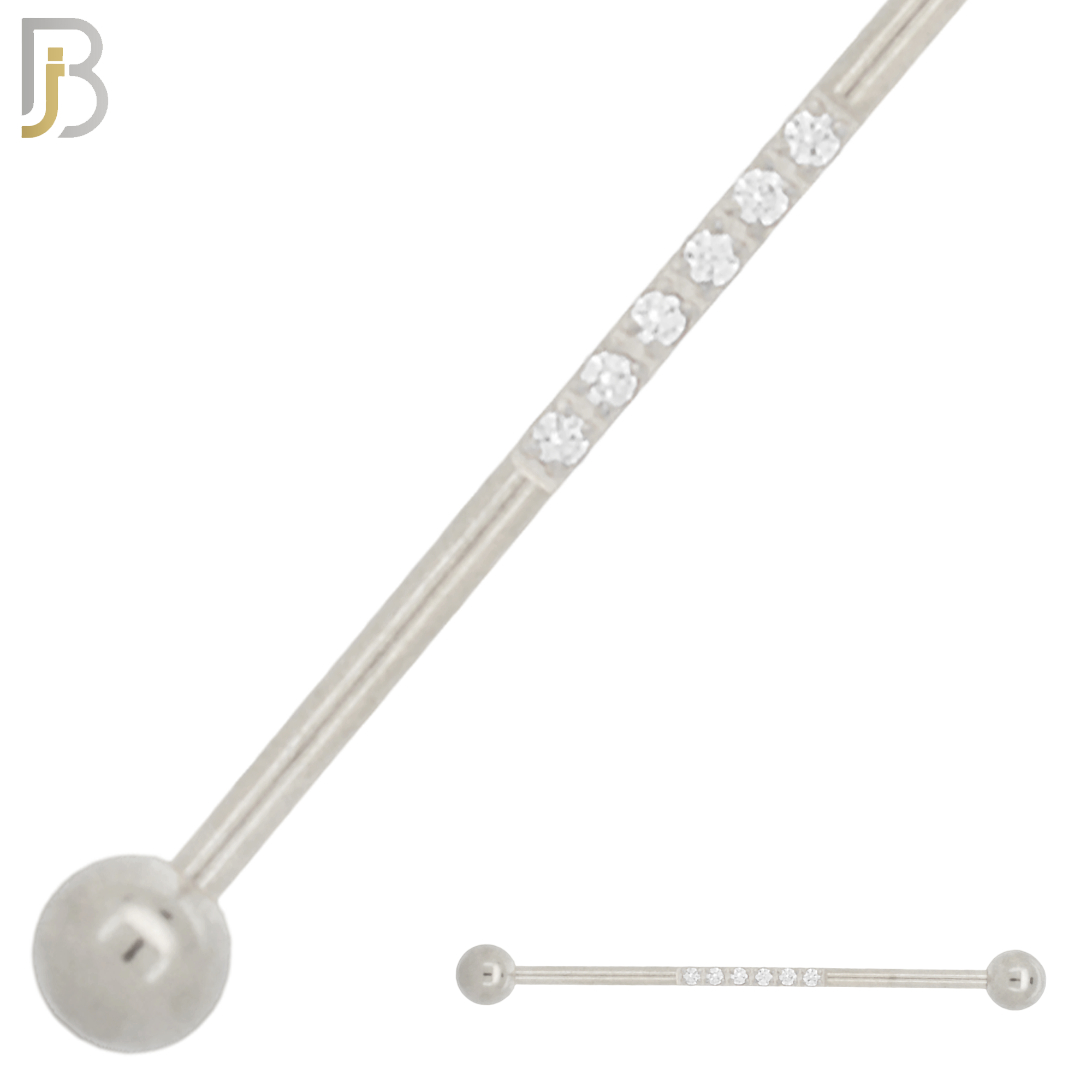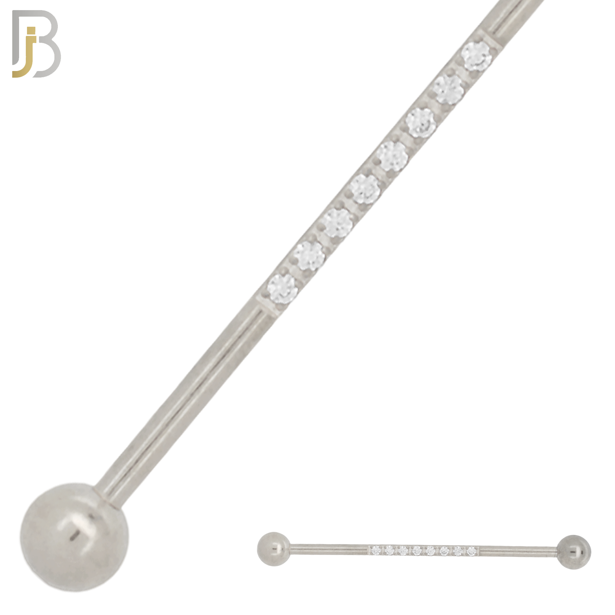 BB23 – 316L Surgical Steel Screw Bar Multi CZ Paved Design Barbell Industrial (PACK OF 6)