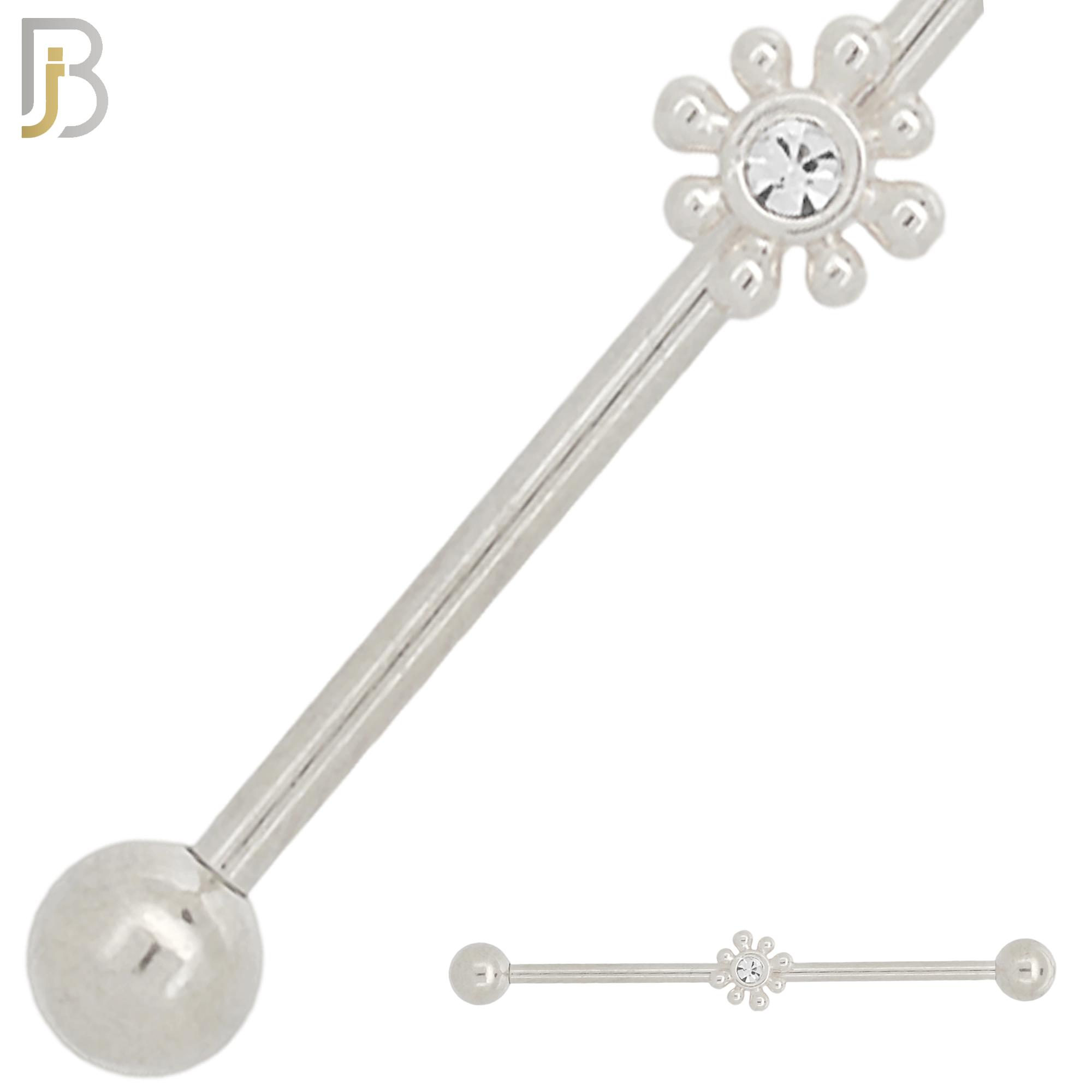 316L Surgical Steel Screw Bar with Brass Flower Design Barbell Industrial