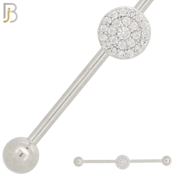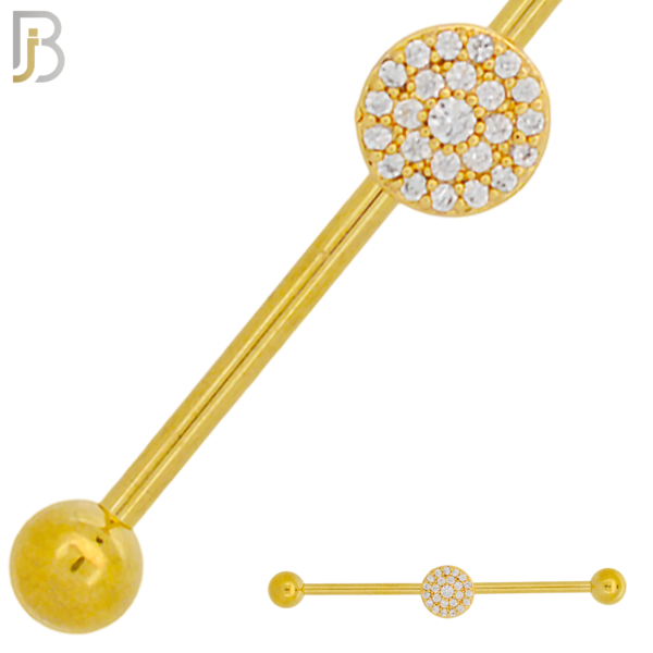 316L Surgical Steel Screw Bar with Brass Round with Multi CZ Design Barbell Industrial