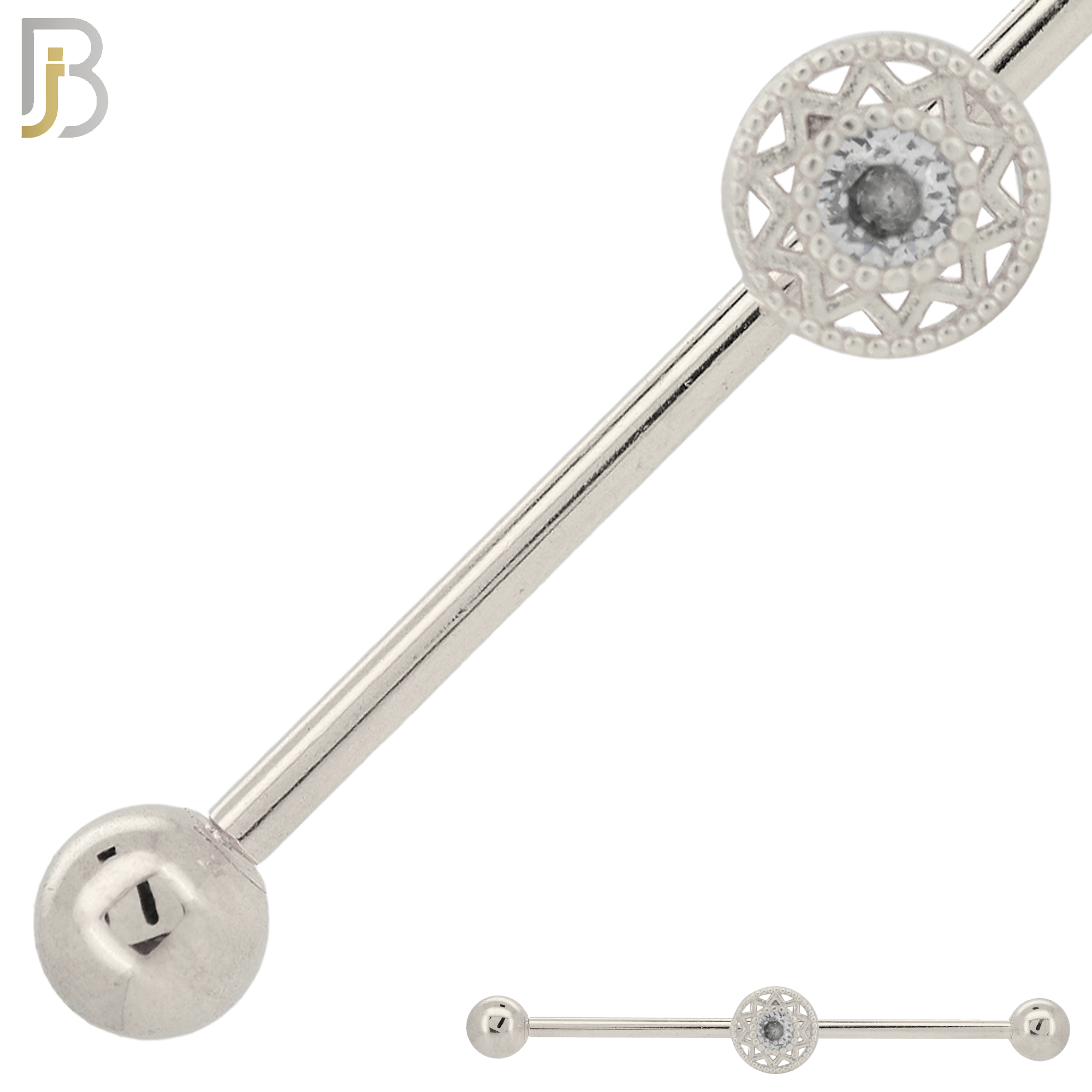 316L Surgical Steel Screw Bar with Rounded Flower Design Externally Threaded Industrial Barbell