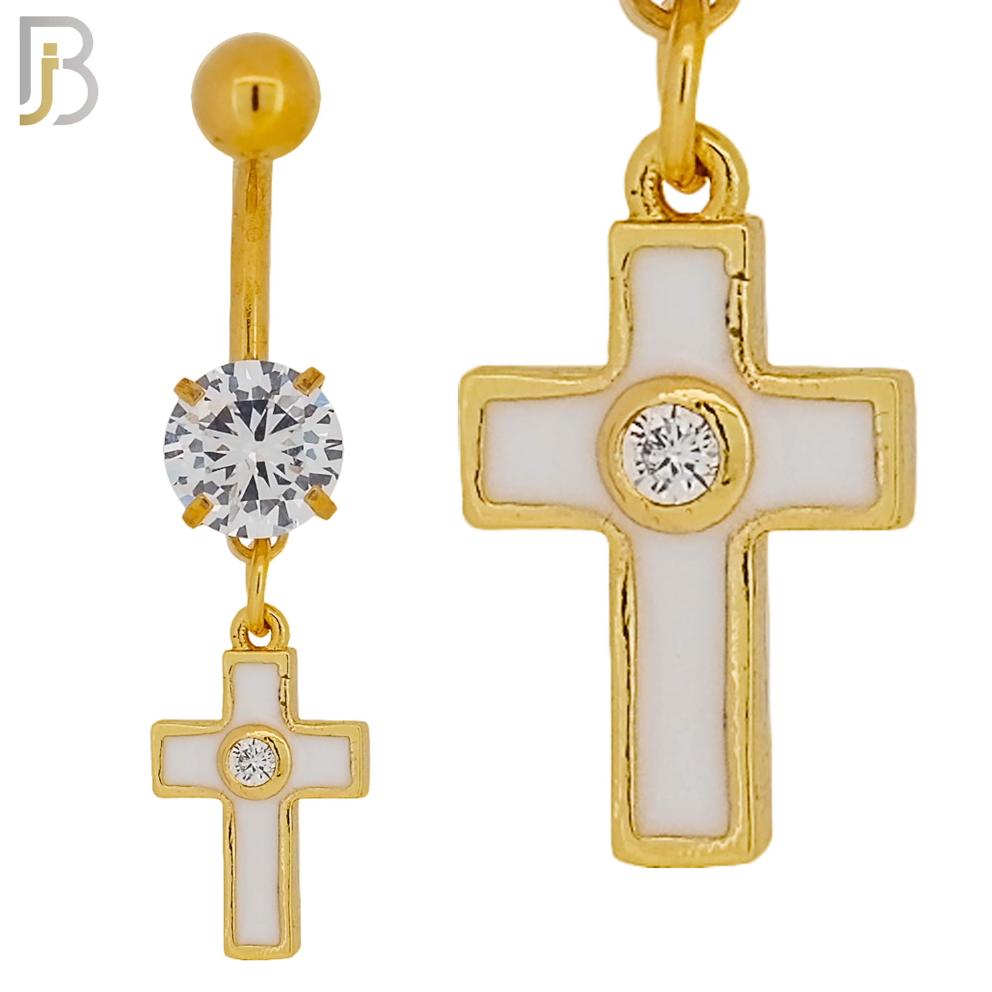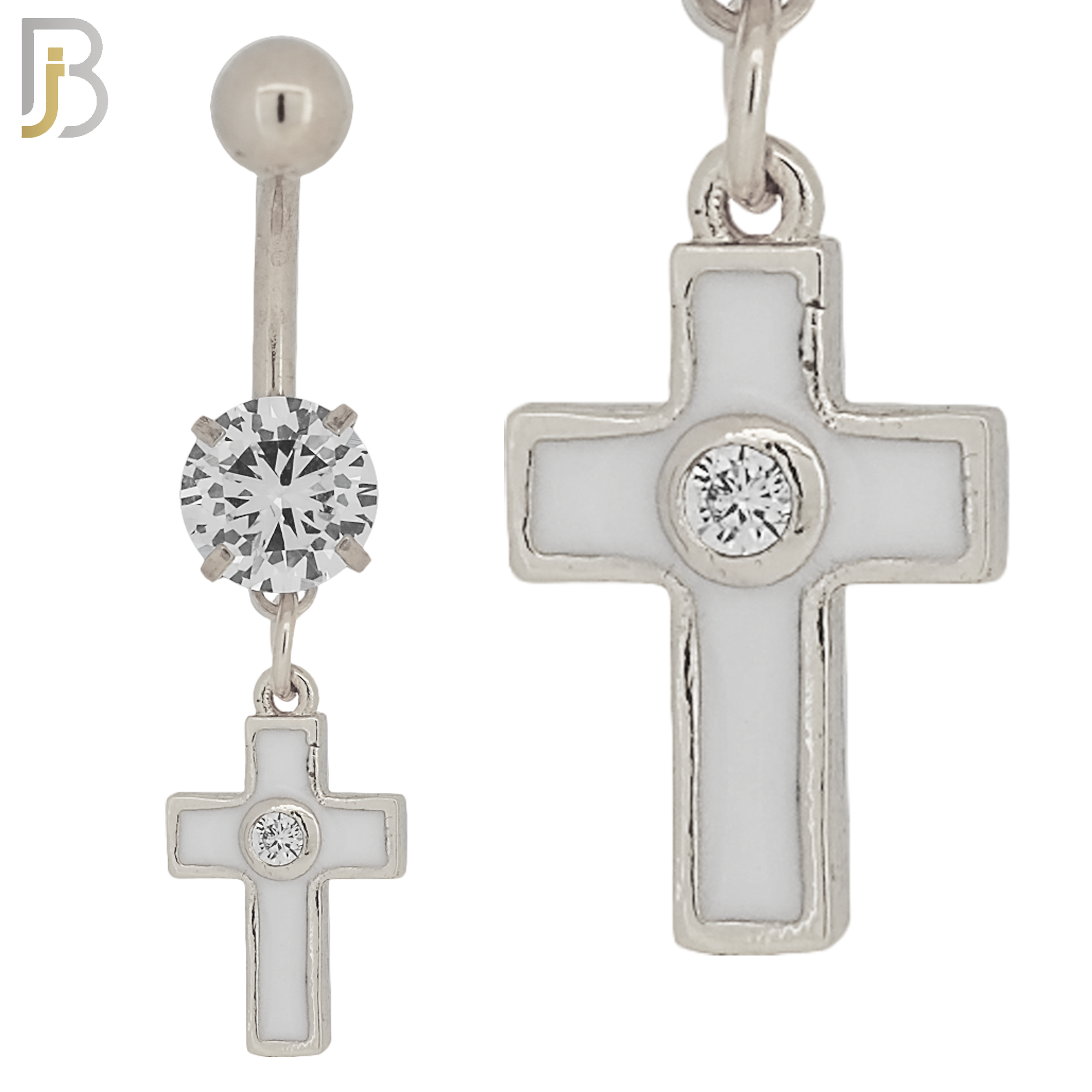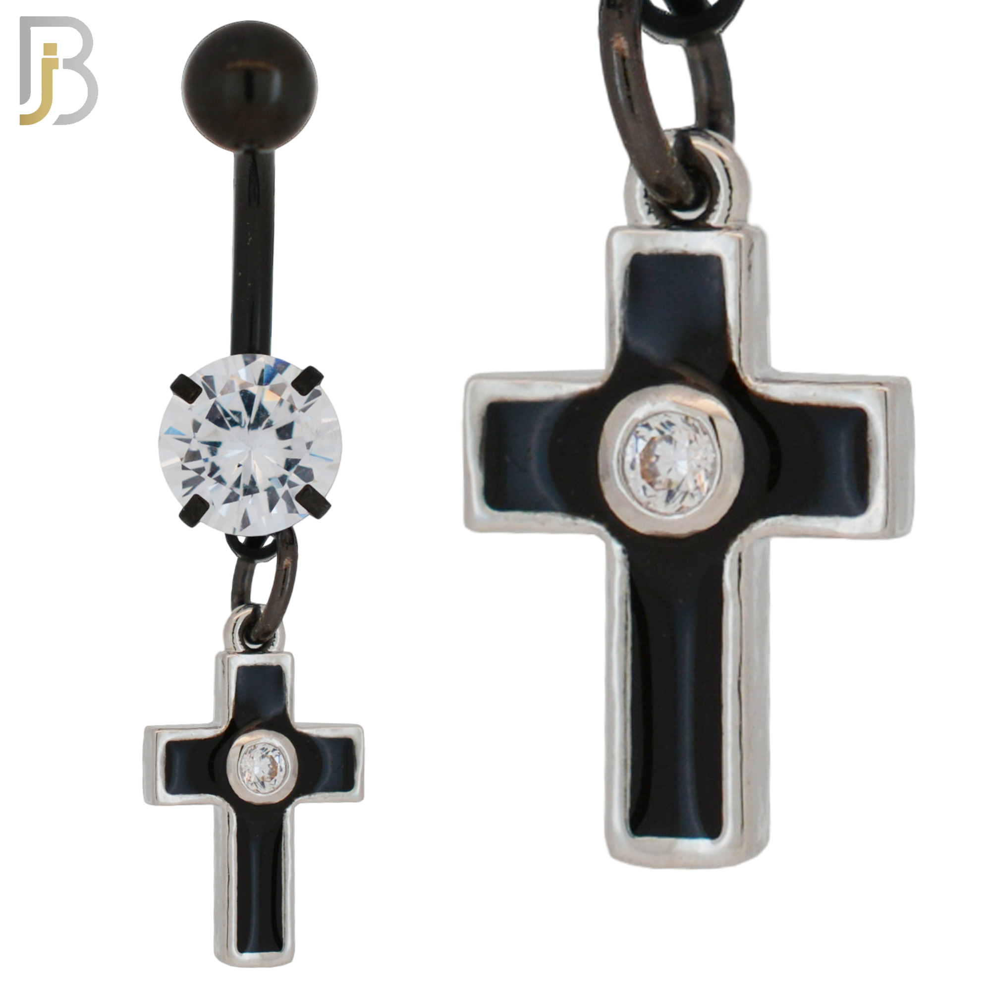 316L Stainless Steel Dangling Cross with Bezel Zircon Design Belly Ring Jewelry with 5mm Screw Ball