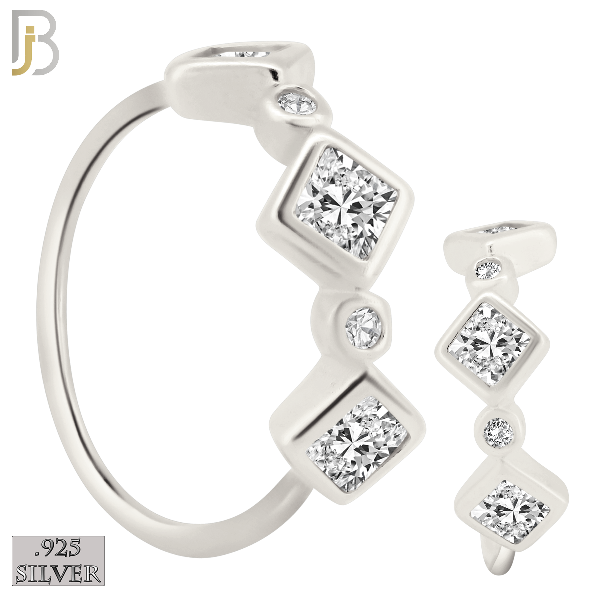 925 Sterling Silver Alternating Square (3) and Round (2) CZ in Bezel Set 20g Thickness Twist to Open Hoops
