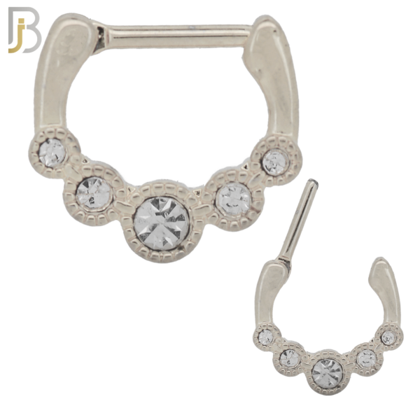 316 Stainless Steel Septum Clicker with CZ in Bezel Setting