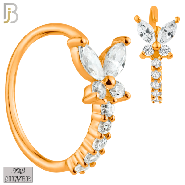 925 Sterling Silver Butterfly with 5 Zircon Line Nose Hoop