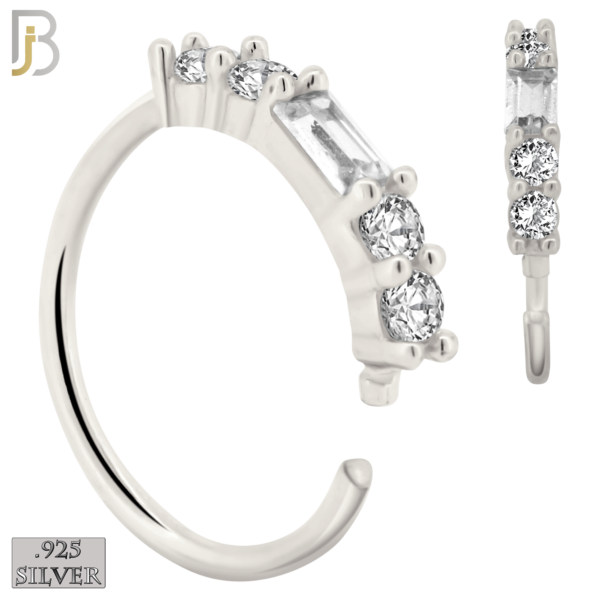 925 Sterling Silver Baguette Shaped Cubic Zircon and Round Side Stones (Pack of 6)