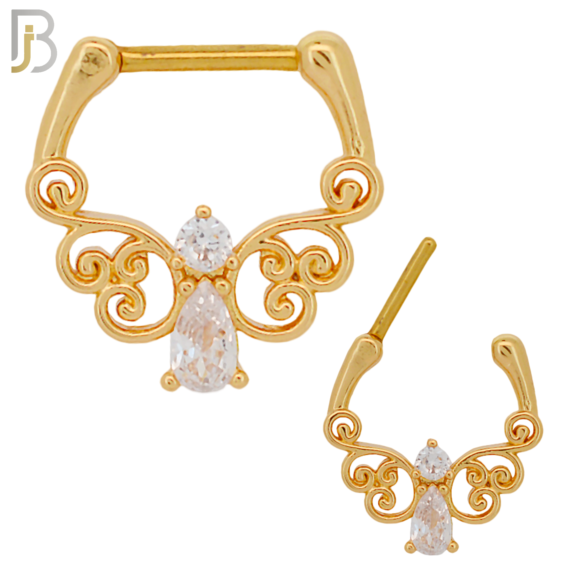 316 Surgical Steel Pear and Round Zircon Nose Clicker for Septum Piercing