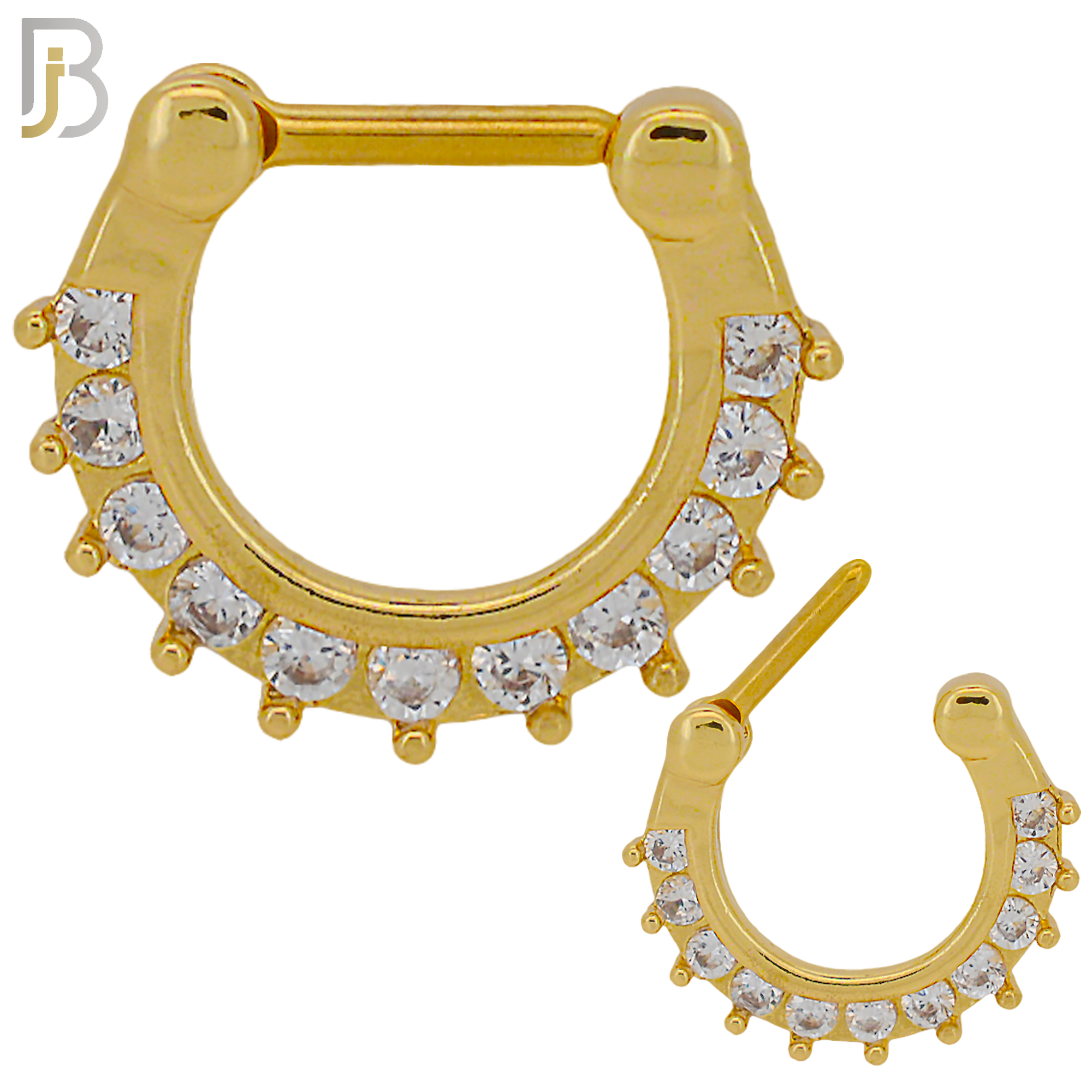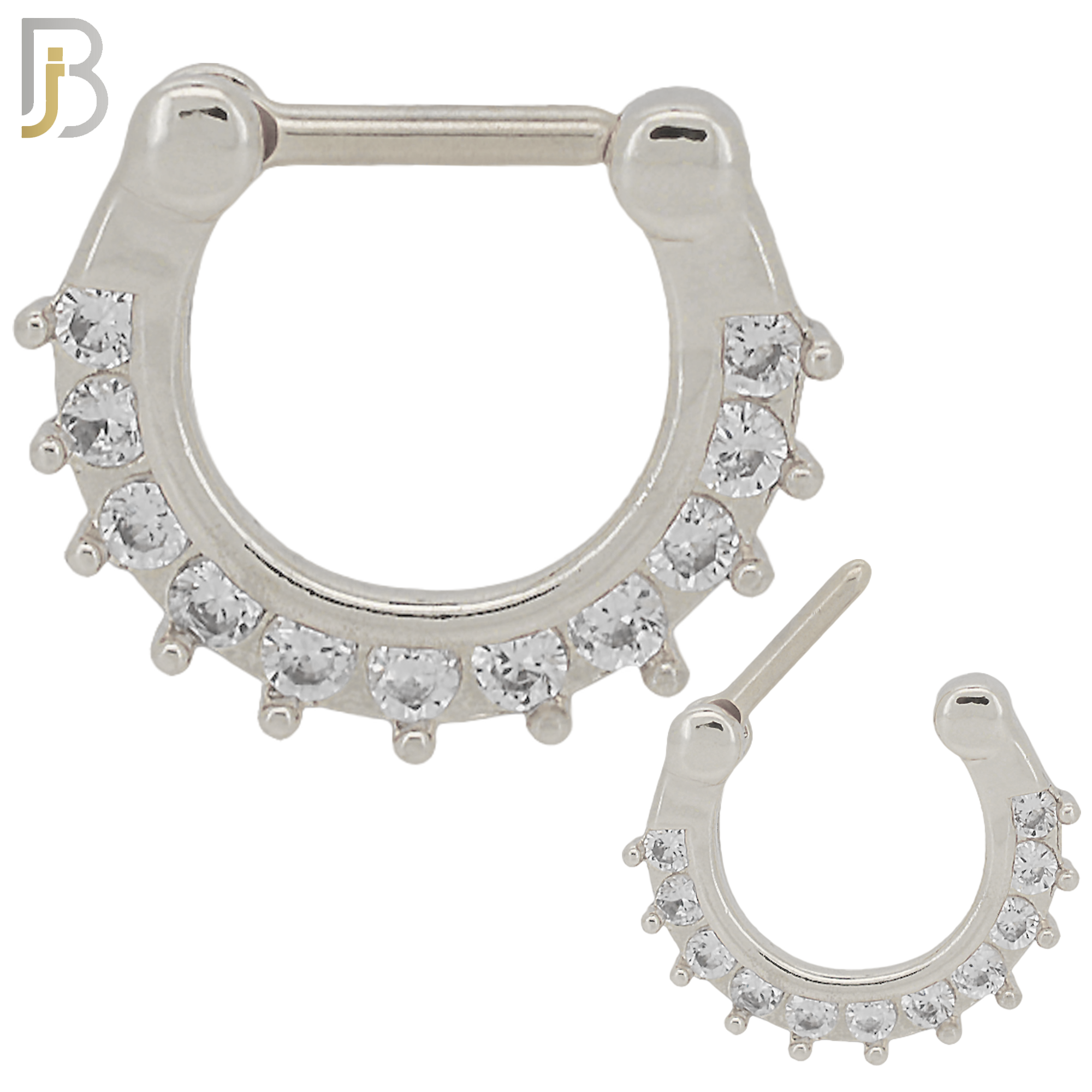316 Stainless Steel Septum Clicker with CZ Gems Nose Rings