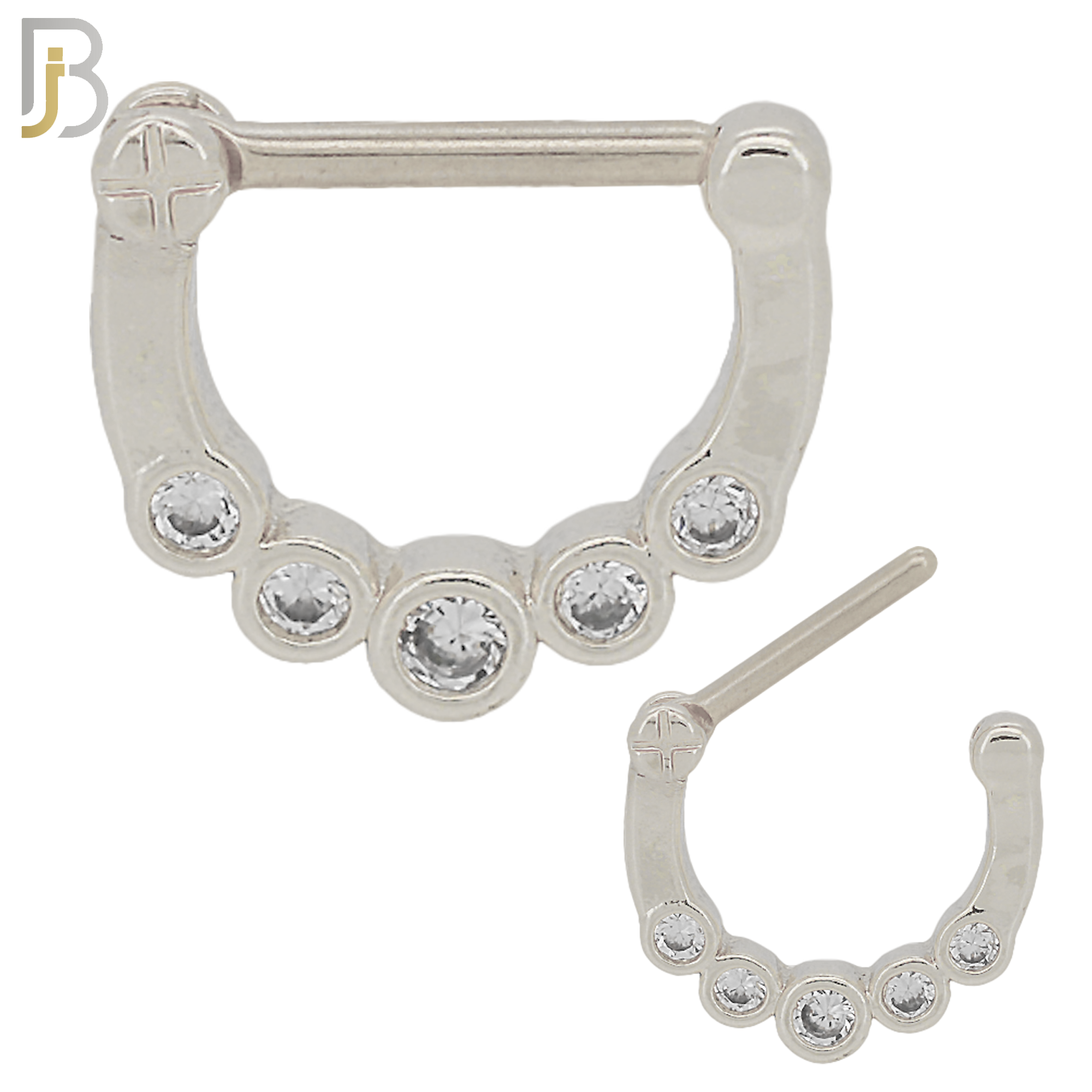 316 Stainless Steel Septum Clicker with CZ Gems Nose Rings