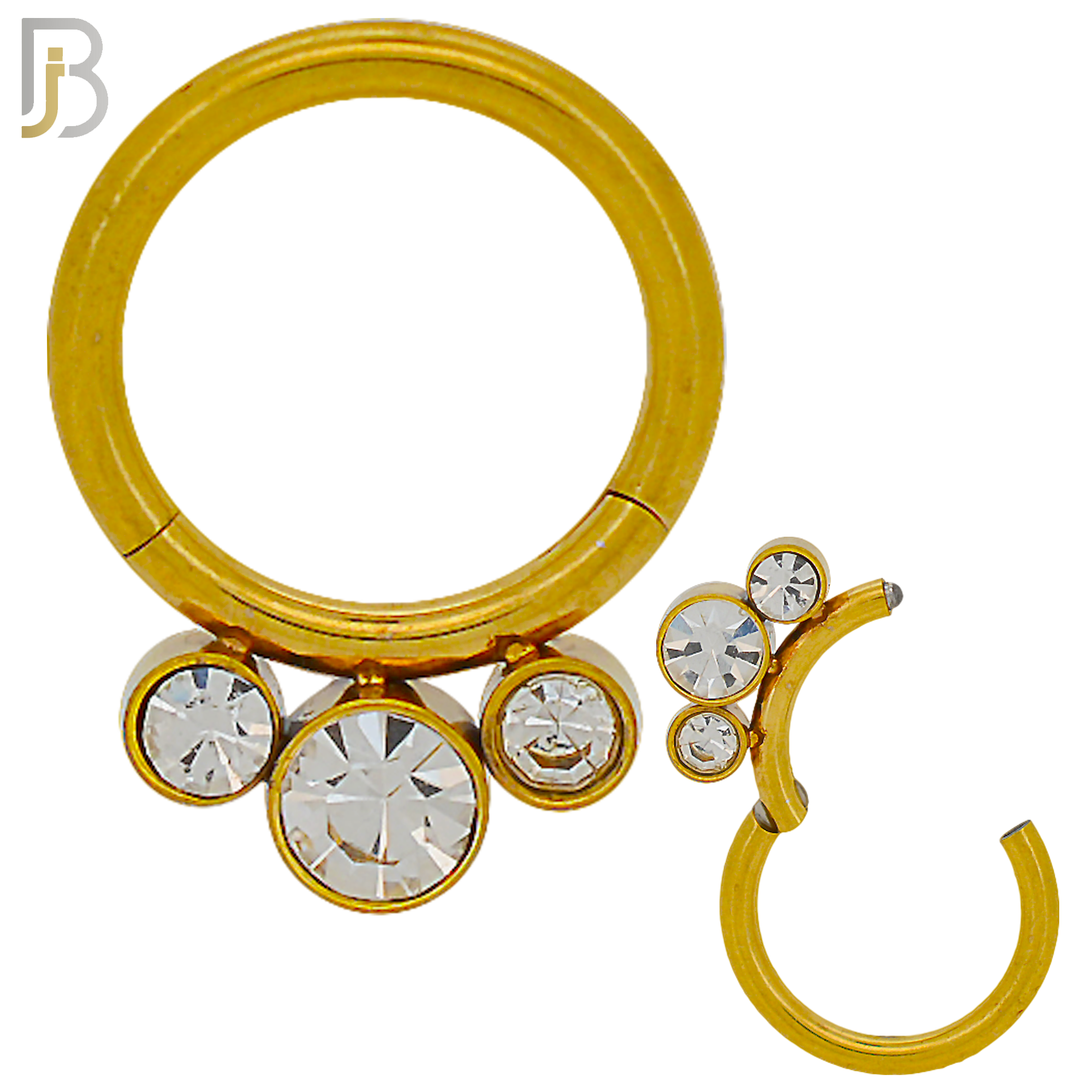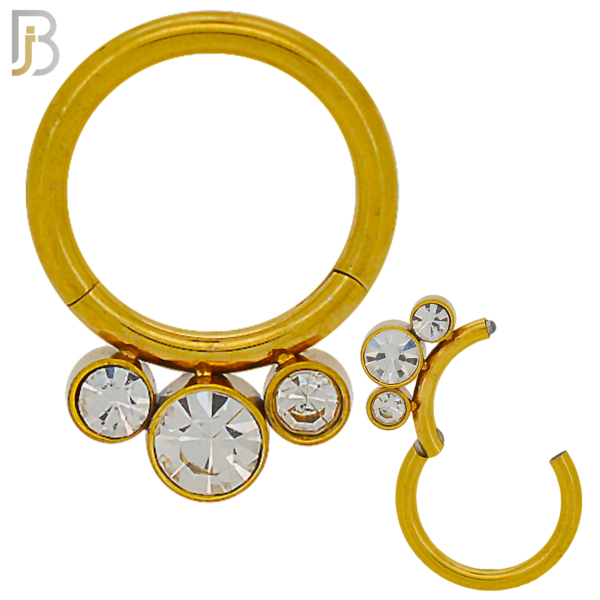 316 Stainless Steel Hinged Hoop with CZ Gems Nose Rings