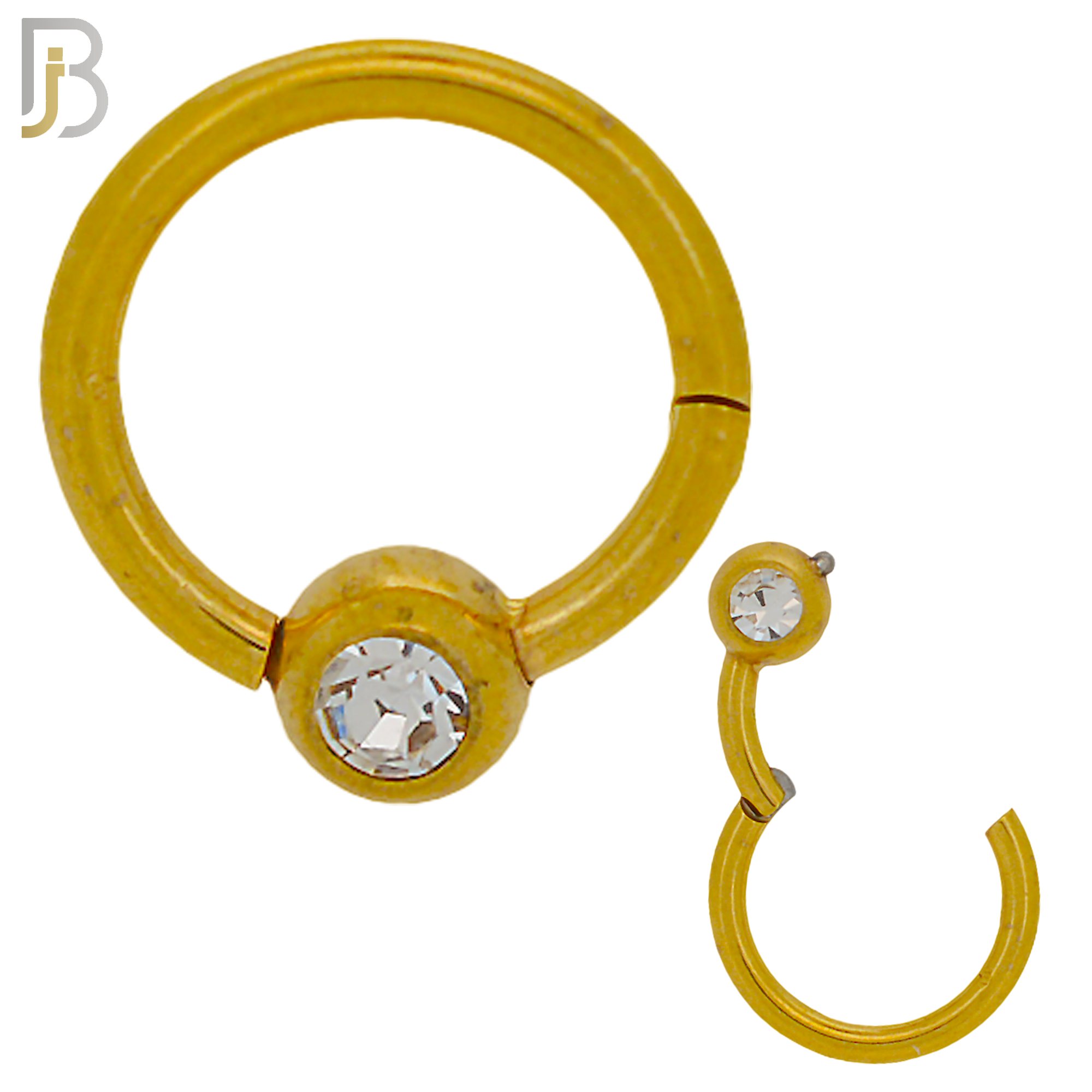 316 Stainless Steel Hinged Hoop with Single CZ Gem Nose Rings