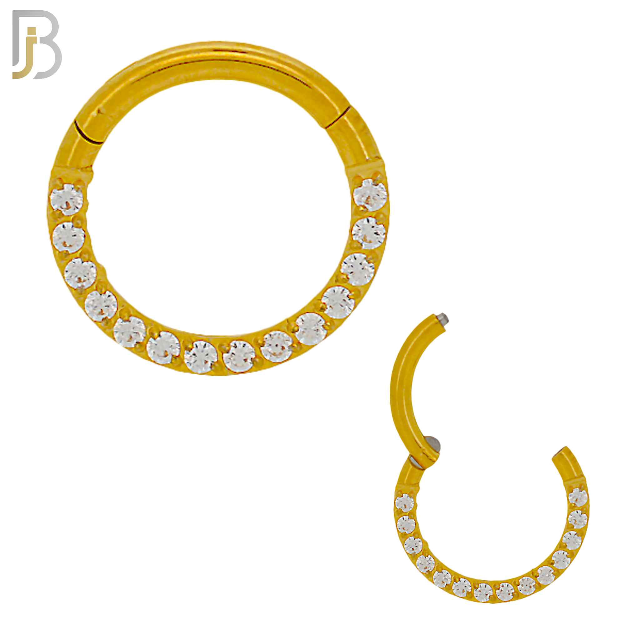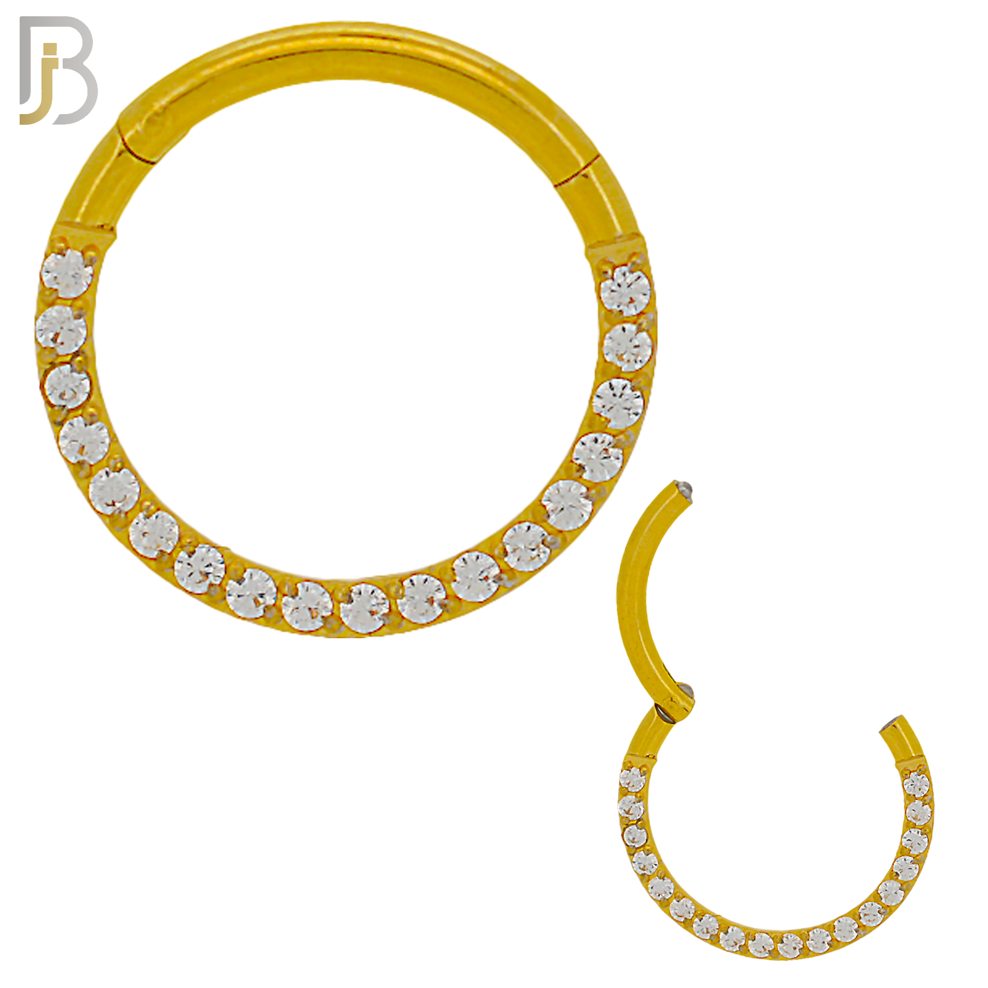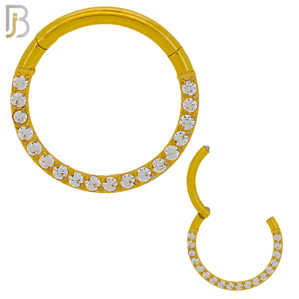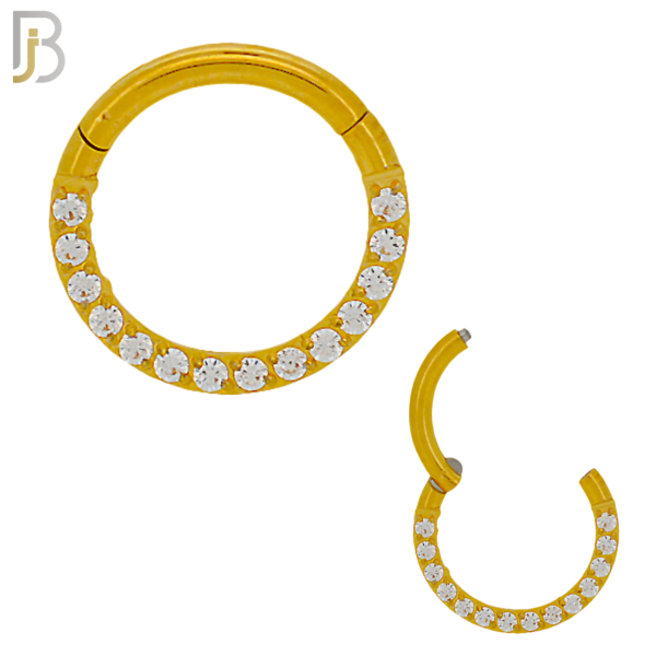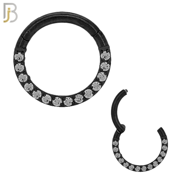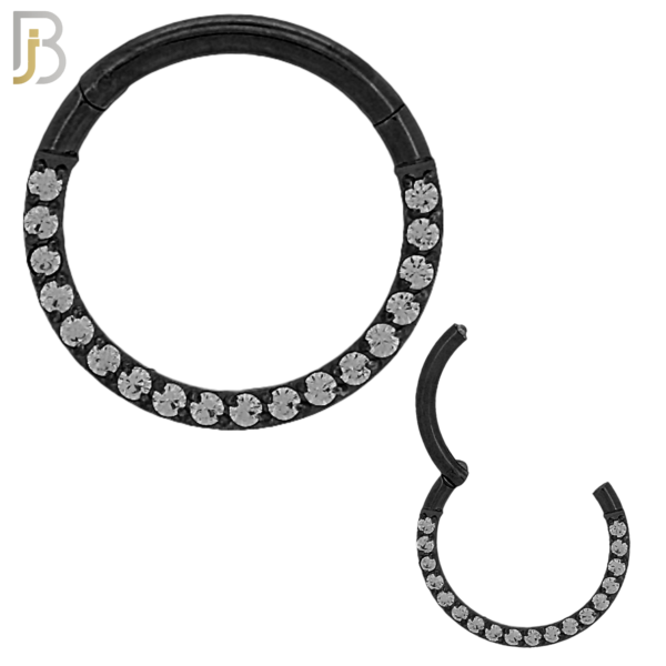 316 Stainless Steel Hinged Hoop with CZ Gems Nose Rings