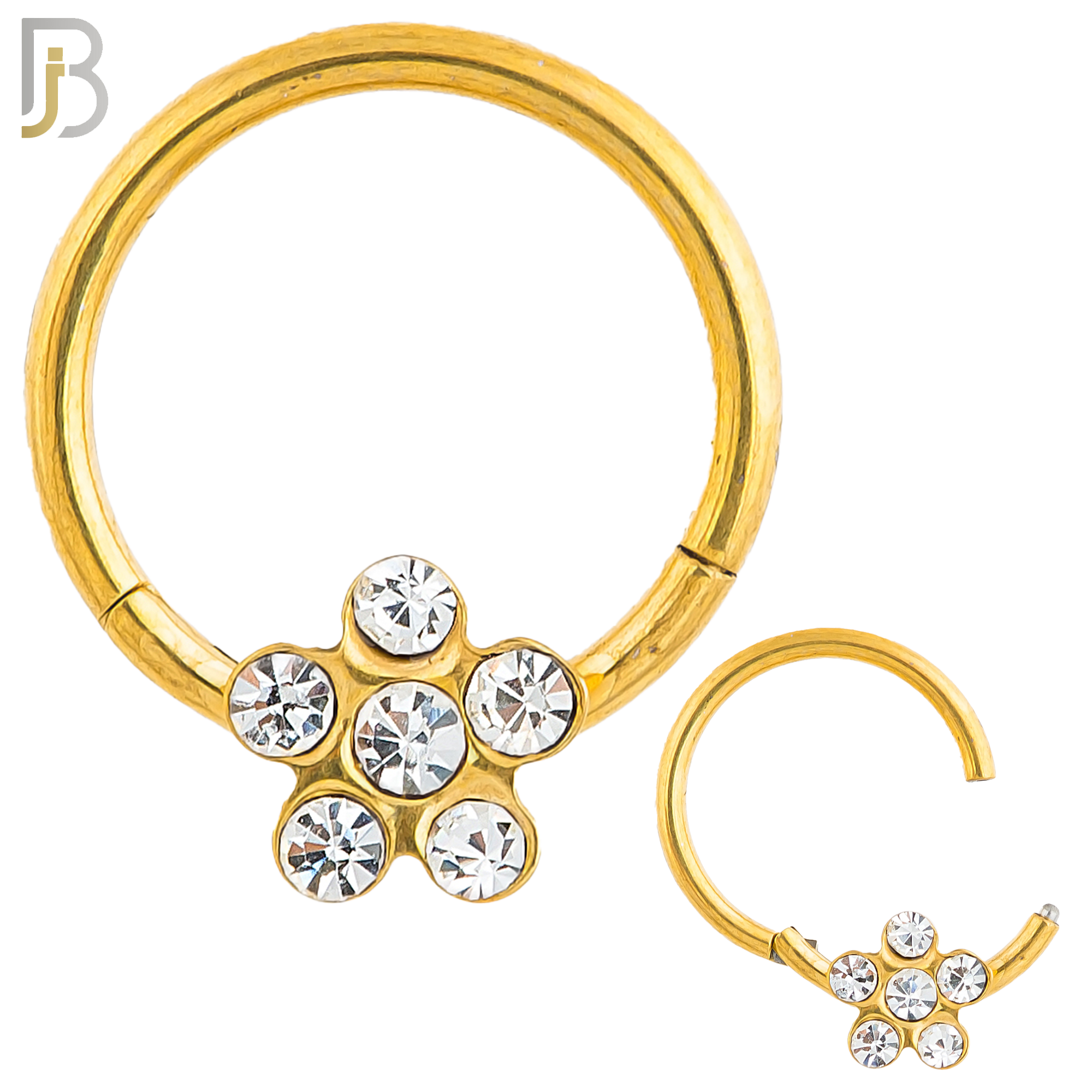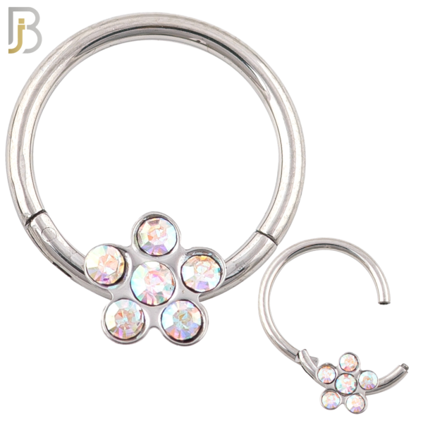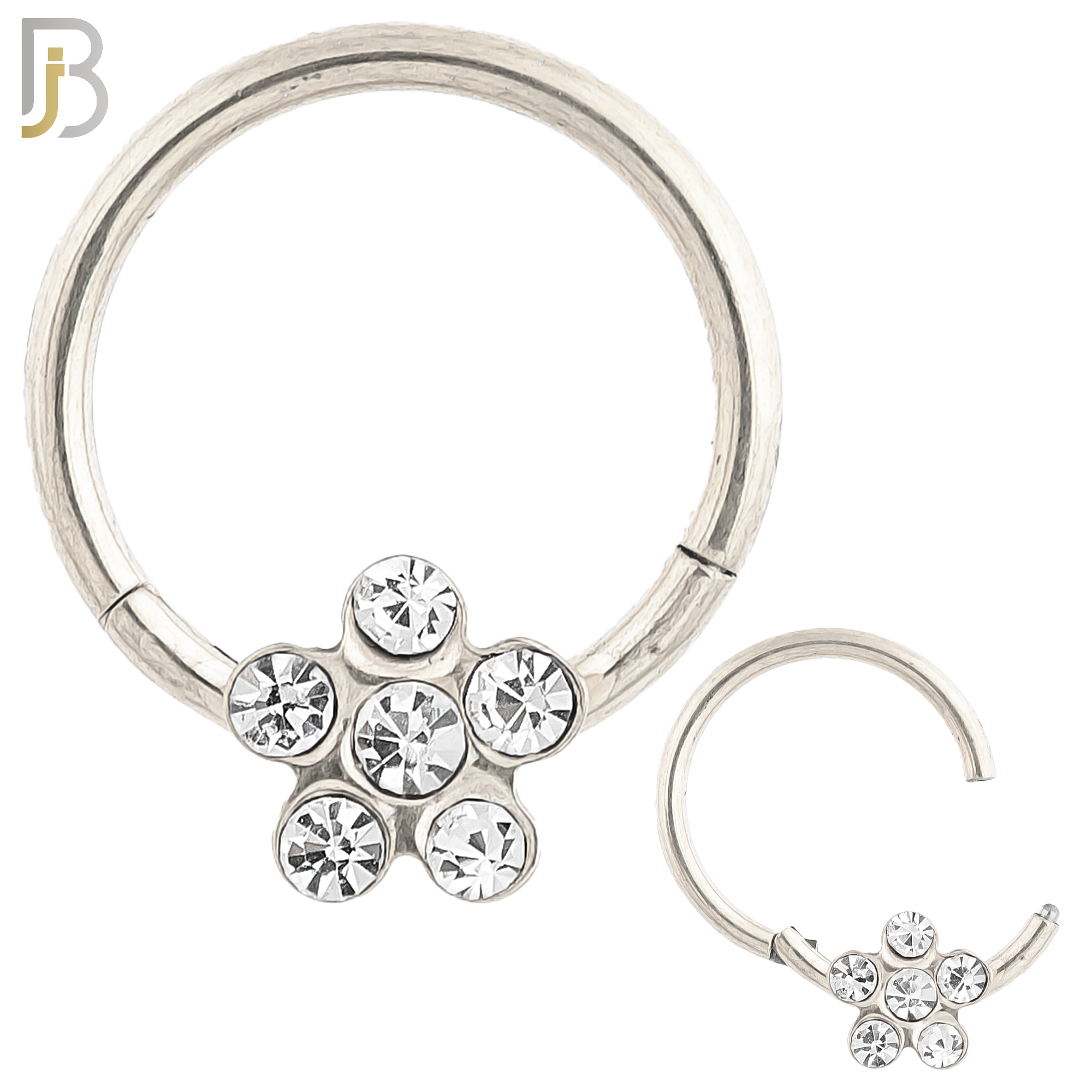 CT98 – 316 Stainless Steel Flower Hinged Hoop Nose Ring (PACK OF 6)