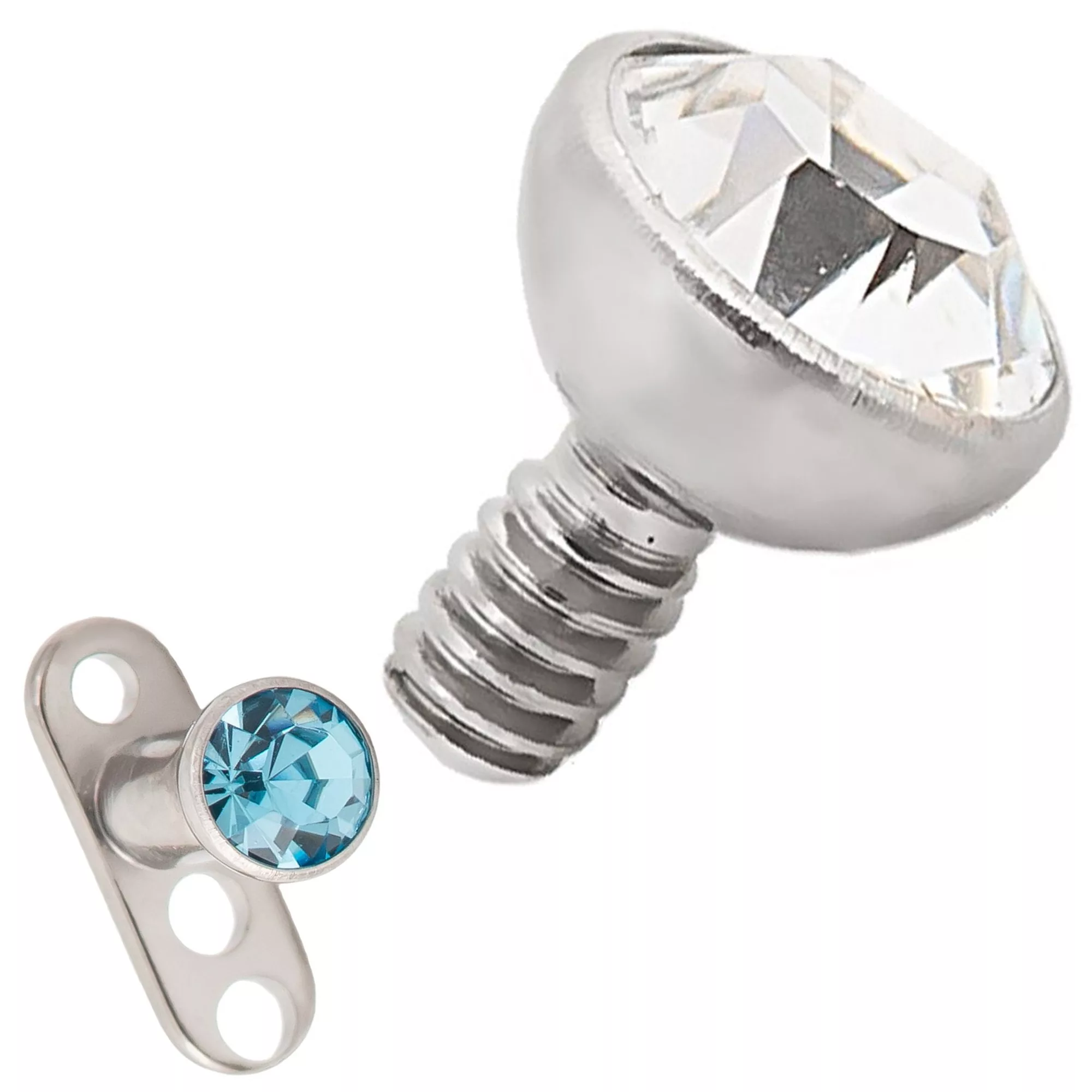 DM05 – 14G Titanium with Surgical Steel Bezel Set CZ Dermal Top Set of 4 Top