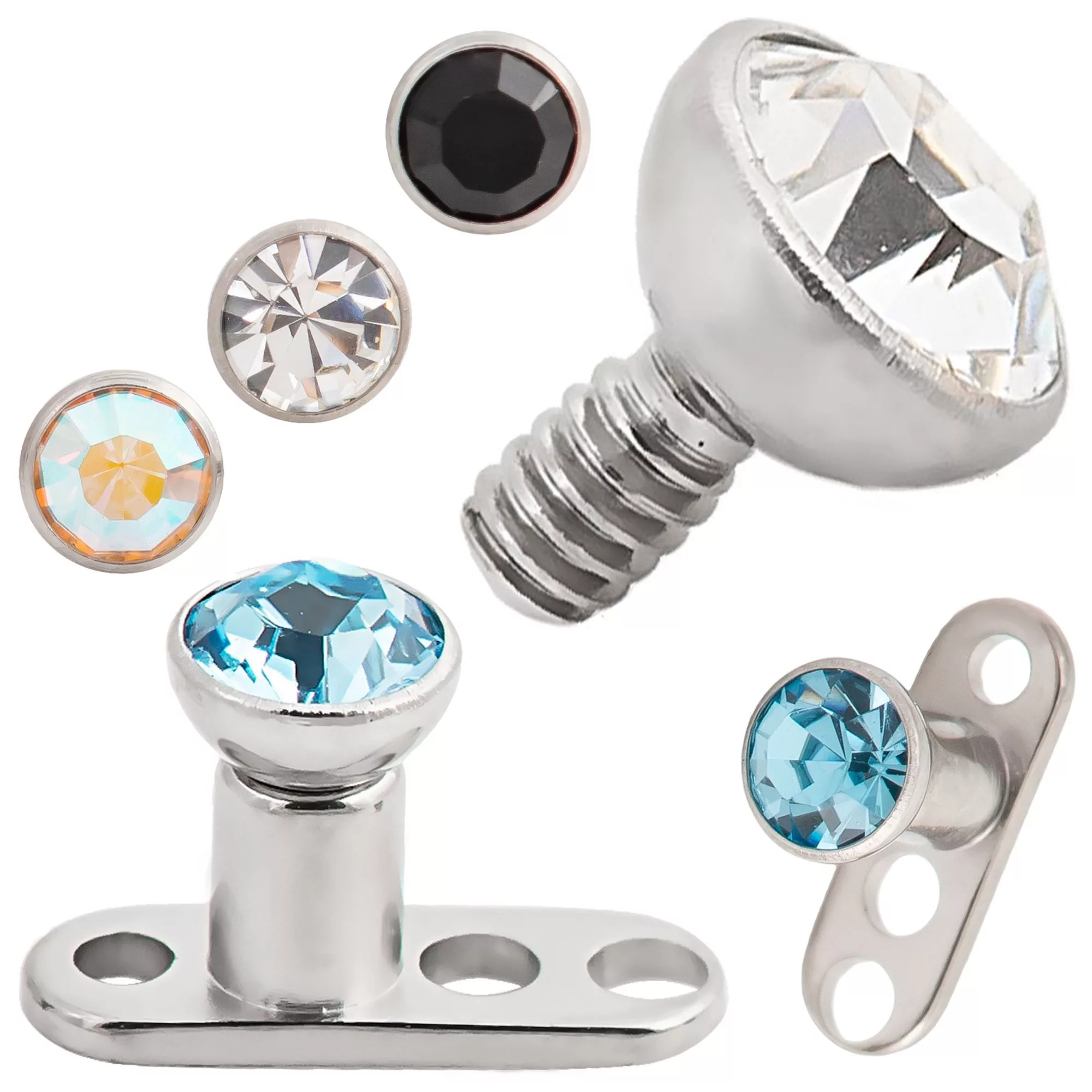 14G Titanium with 1.2mm Surgical Steel Bezel Set CZ Dermal Top Set of 4 Top