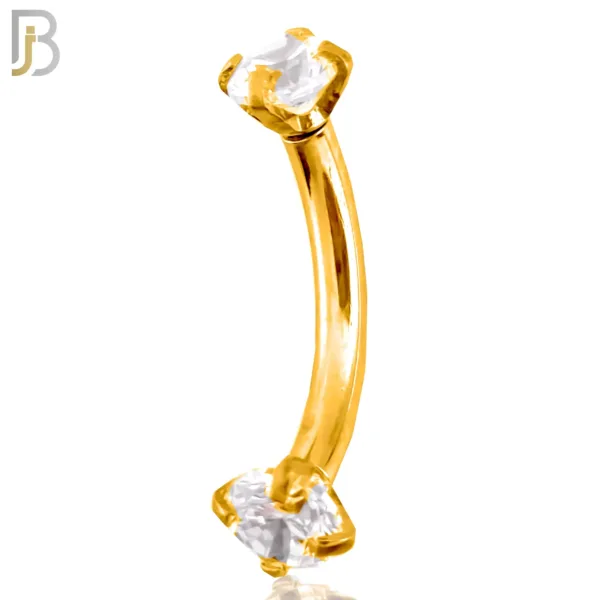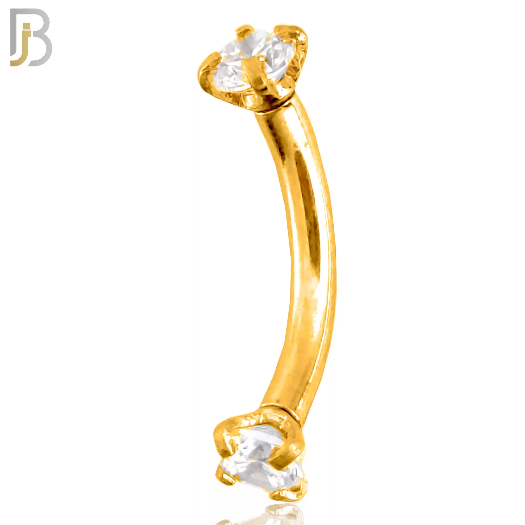 316L Surgical Steel Gold Plated Curved Prong Setting Zircon Internally Threaded