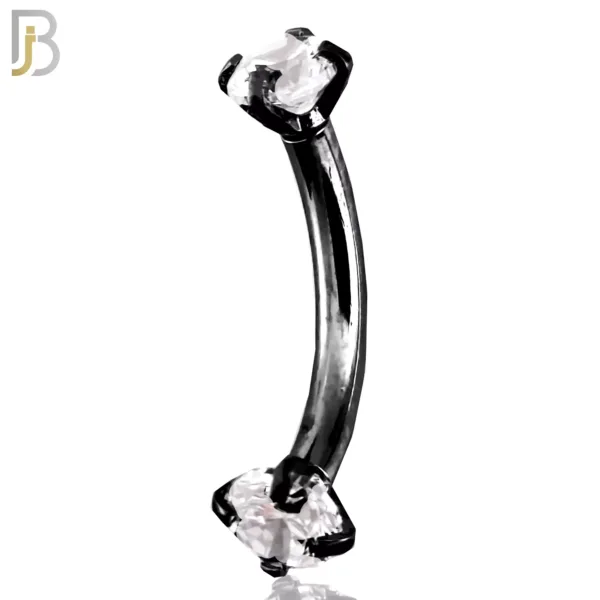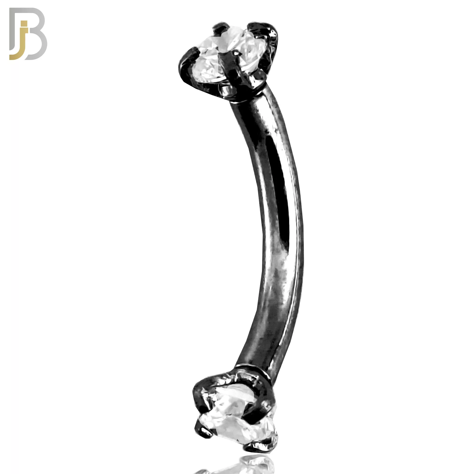 316L Surgical Steel Black Plated Curved Prong Setting Zircon Internally Threaded