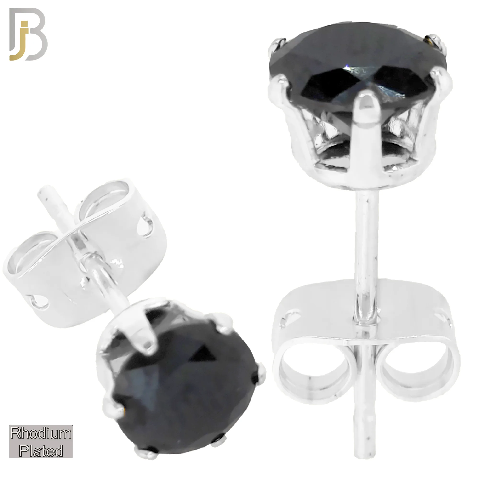 316L Stainless Steel Rhodium Plated Stamping Round Prong Setting with Black Zircon