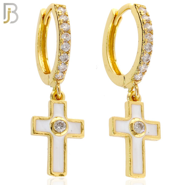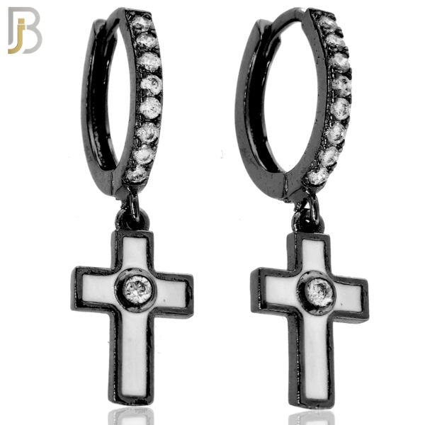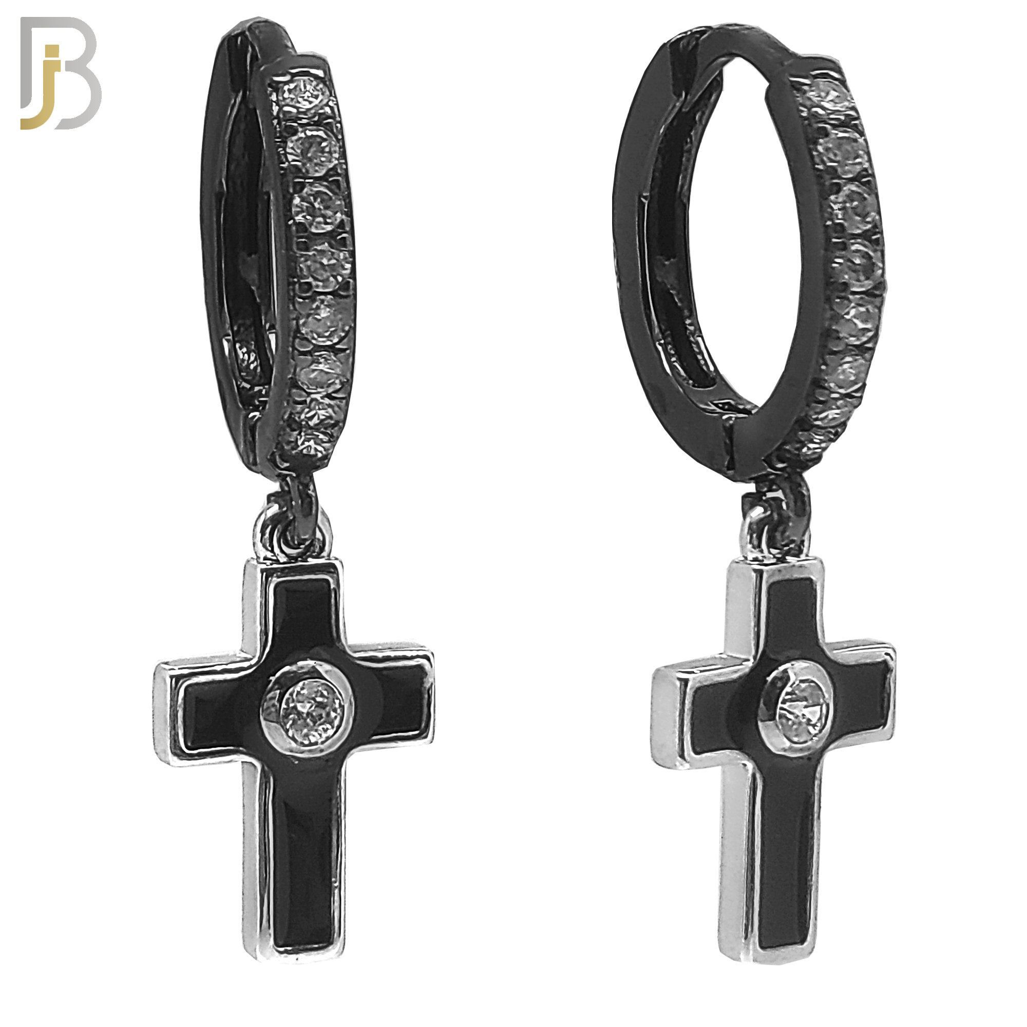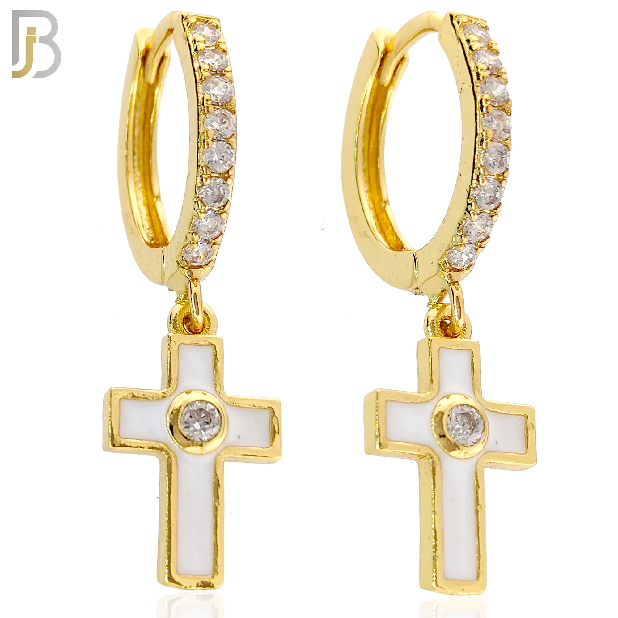 316L Stainless Steel Dangling Cross Enamel with Zircon Huggies Clip On