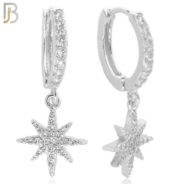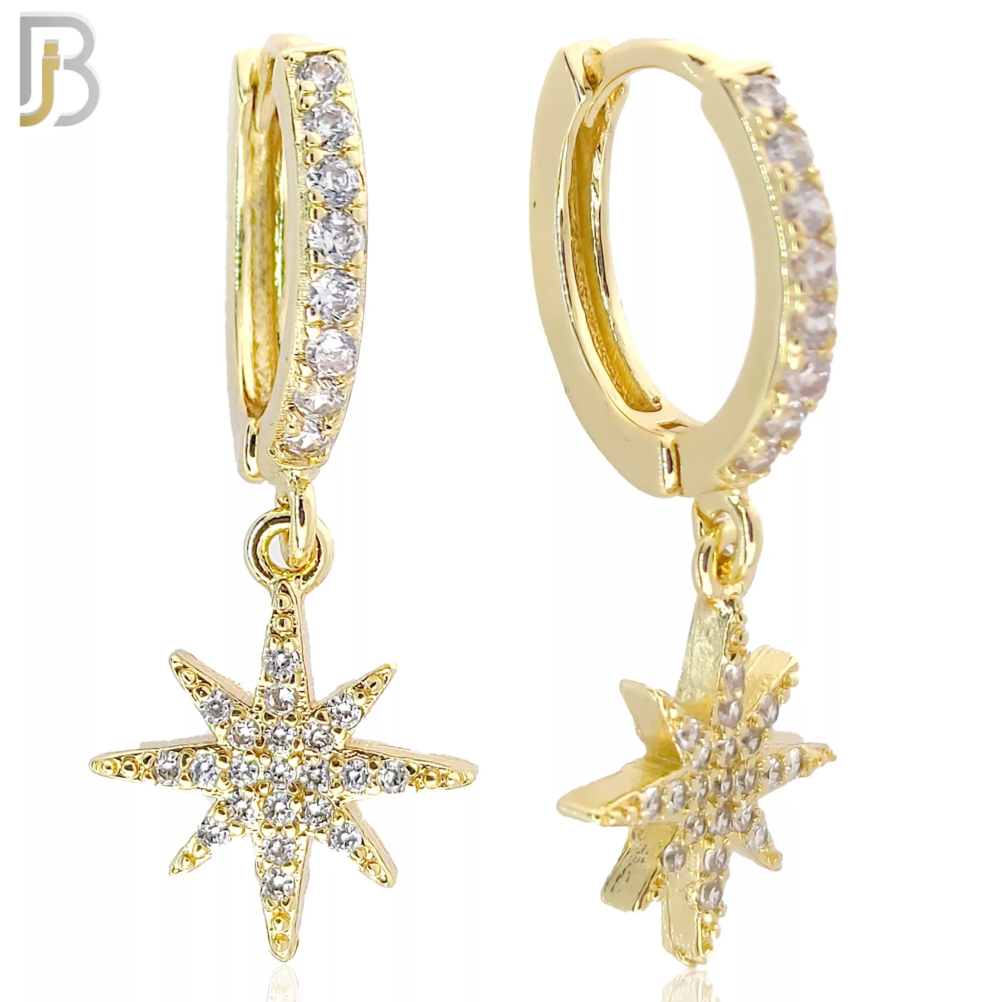 316L Stainless Steel Dangling Moravian Star with Zircon Huggies Clip On