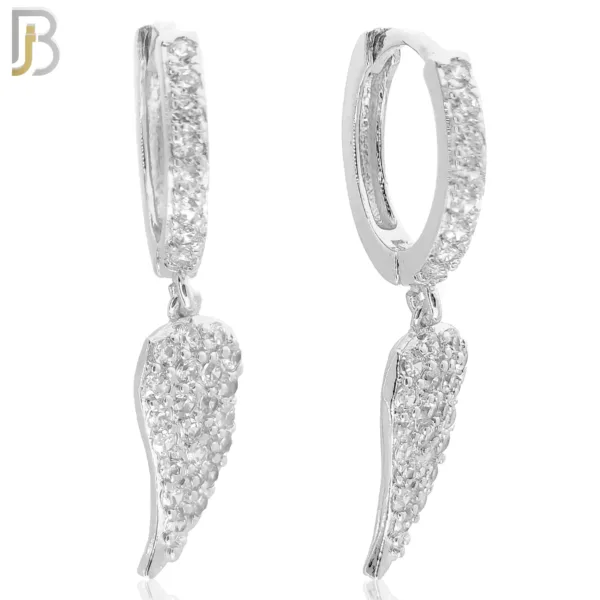 316L Stainless Steel Dangling Angel Wing with Zircon Huggies Clip On