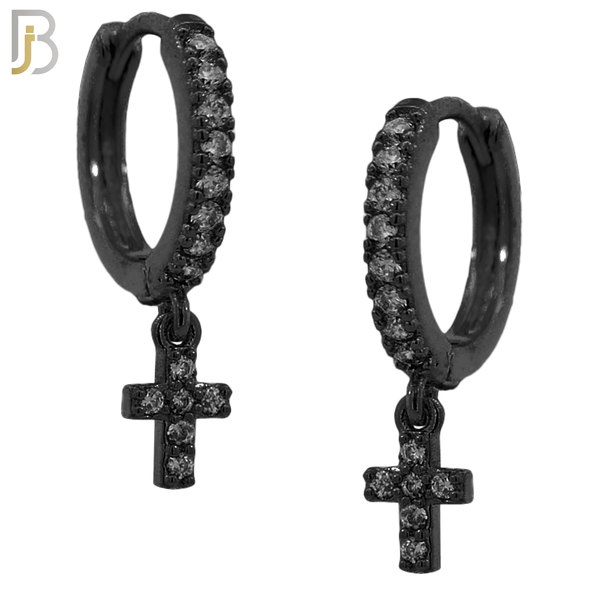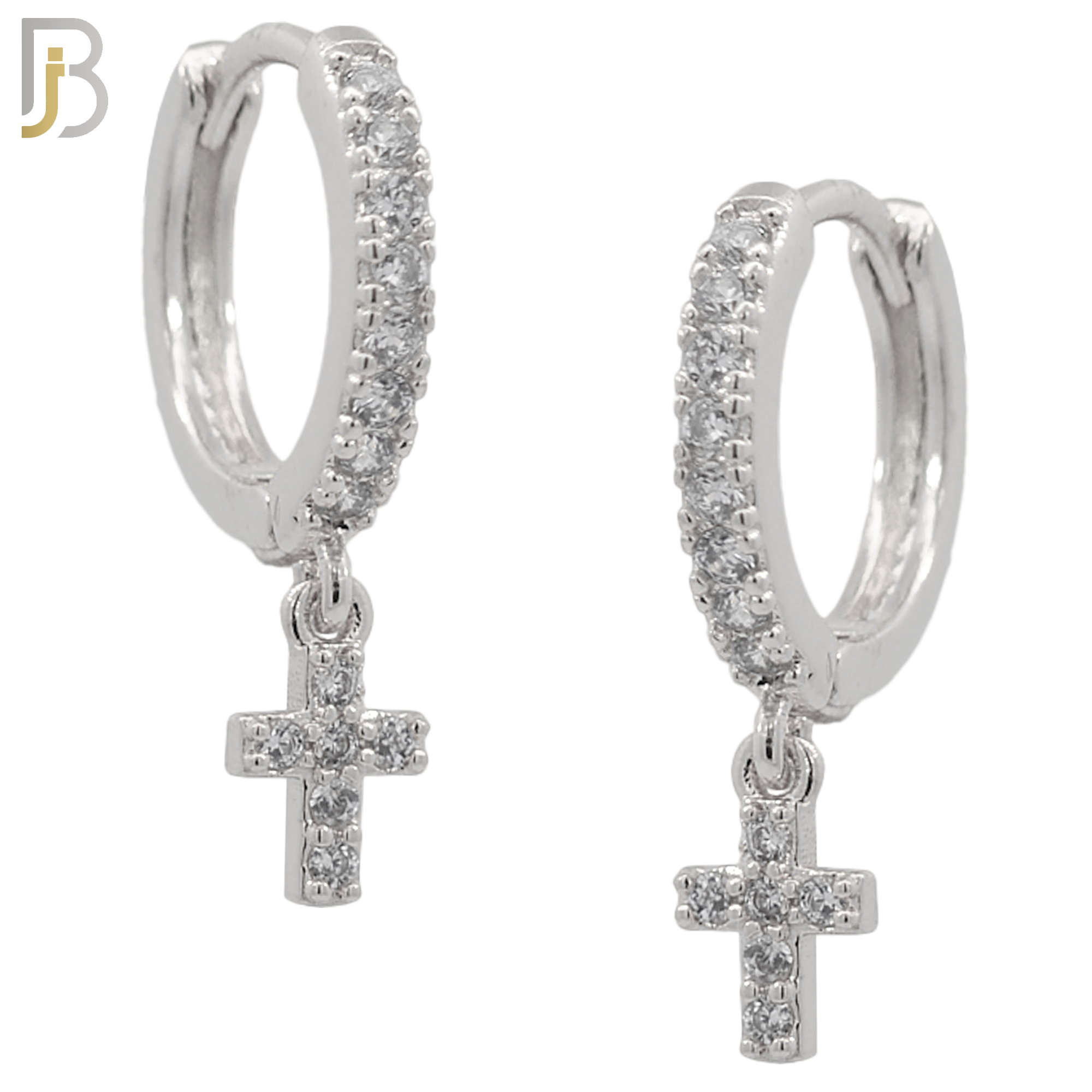 316L Stainless Steel Dangling Cross with Zircon Huggies Clip On