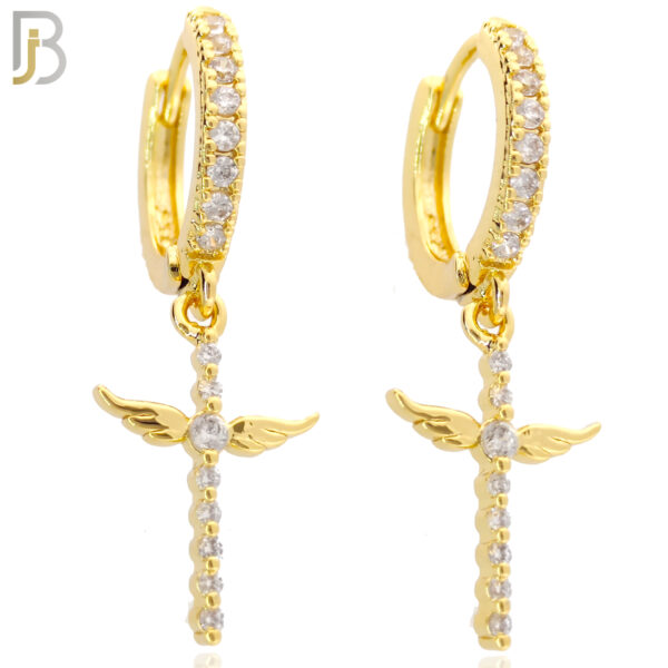 316L Stainless Steel Dangling Angel Wing Cross with Zircon Huggies Clip On