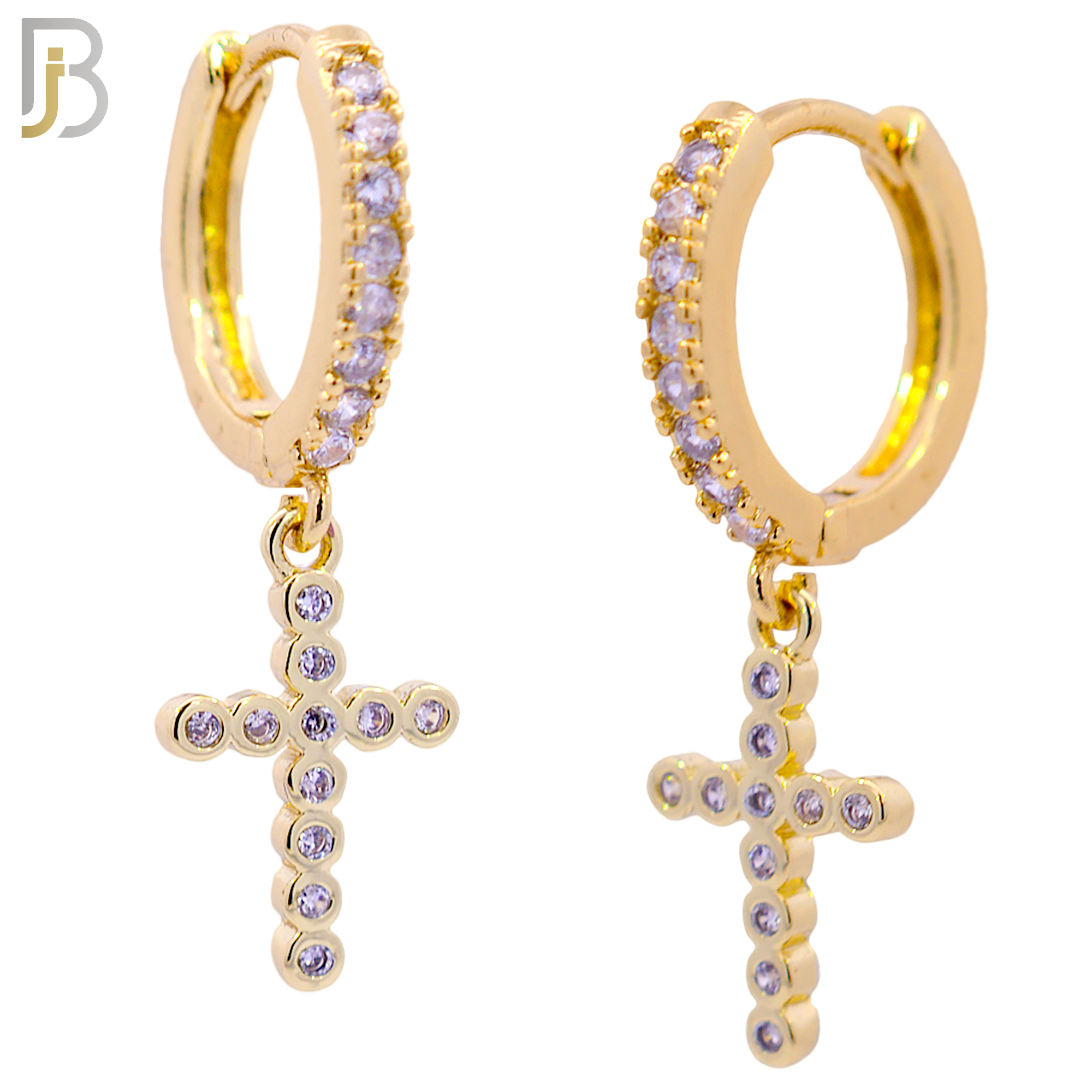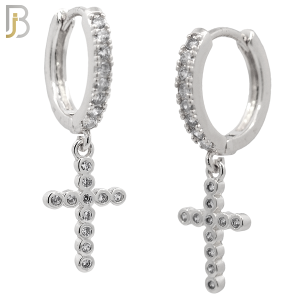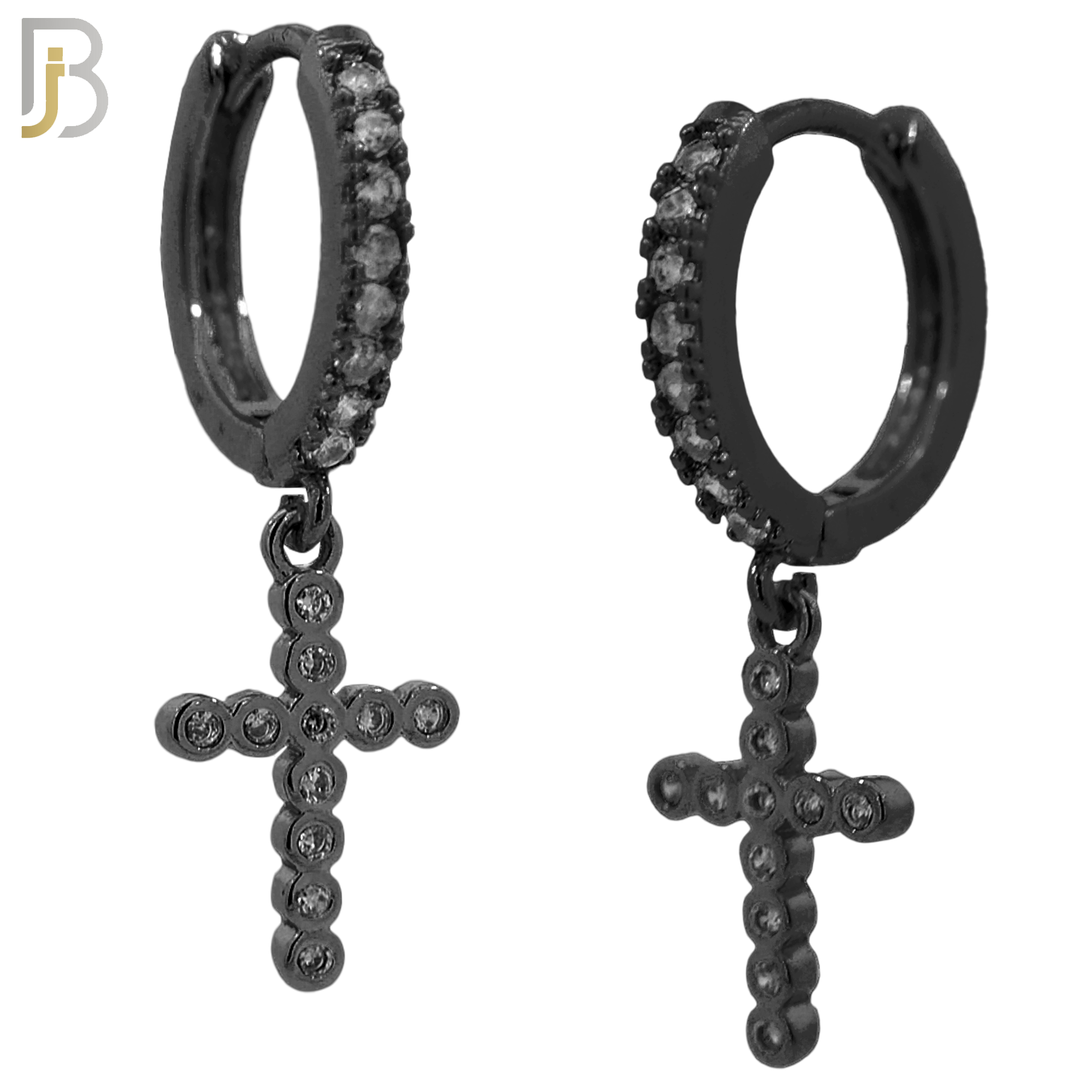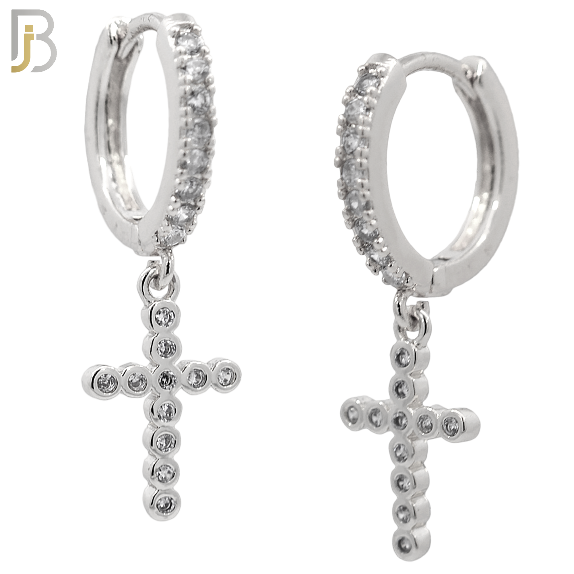 316L Stainless Steel Dangling Cross with Zircon Huggies Clip On