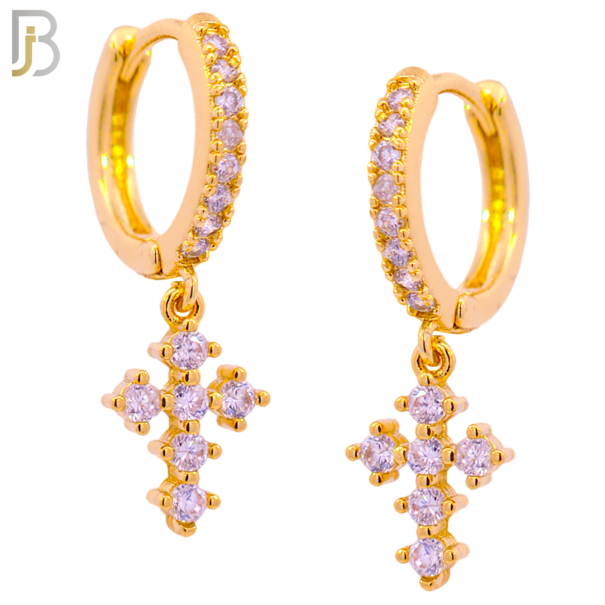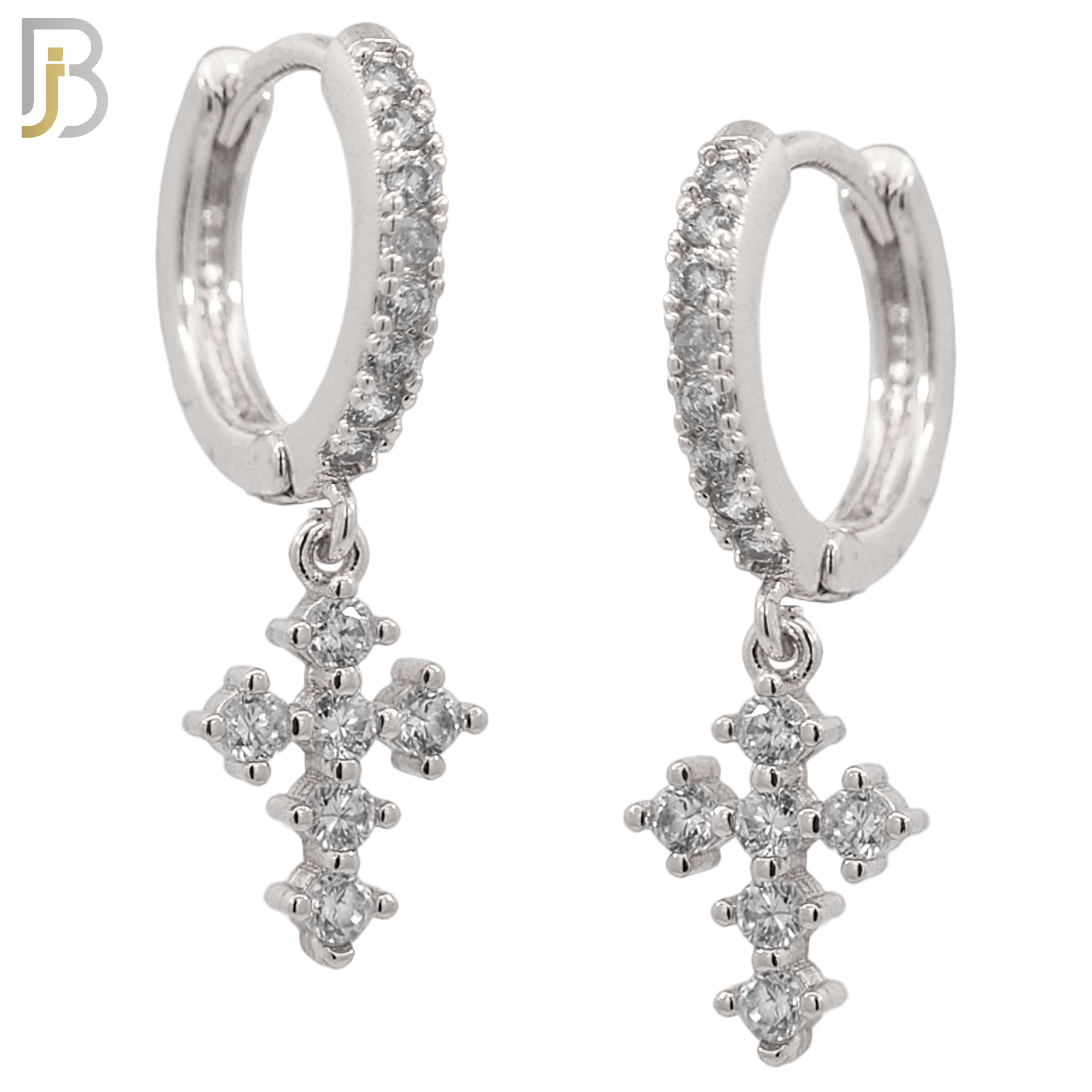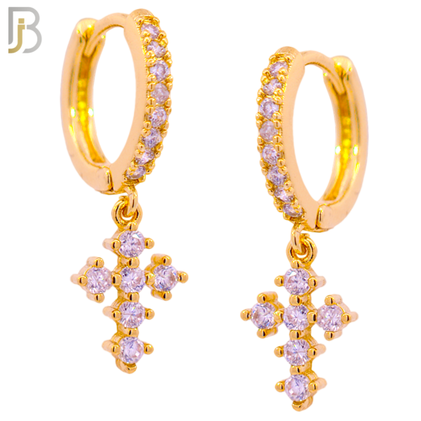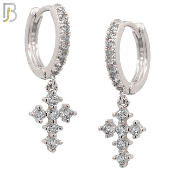 316L Stainless Steel Dangling Cross with Zircon Huggies Clip On