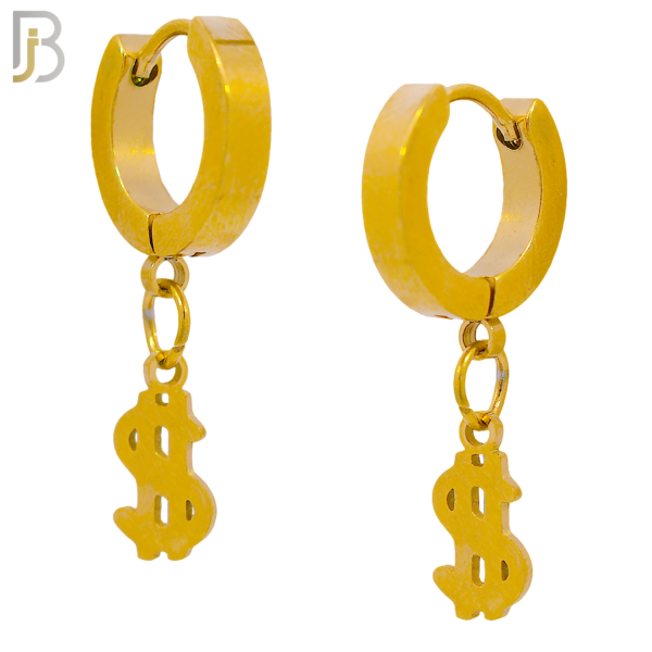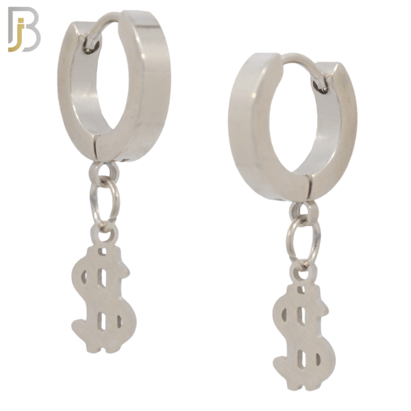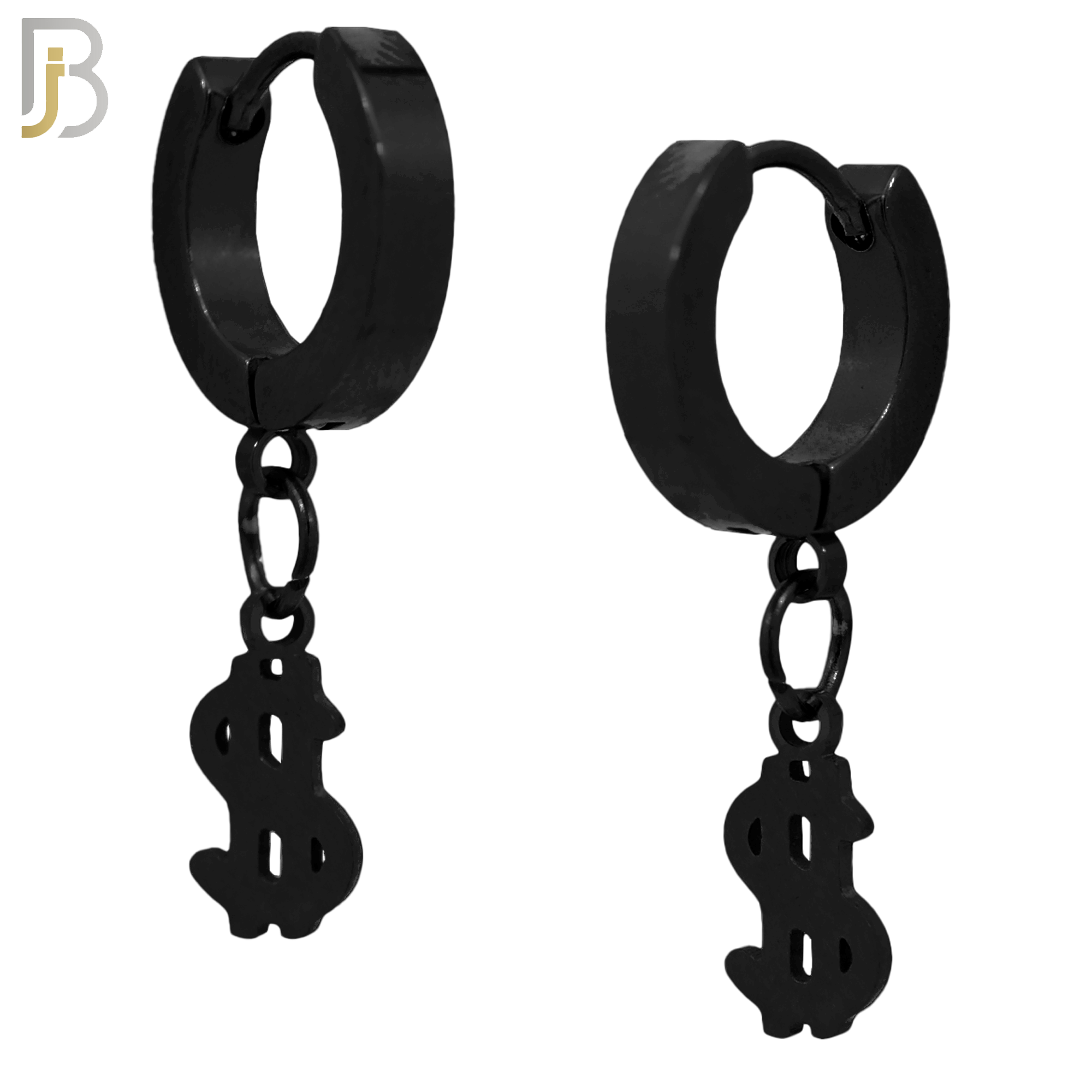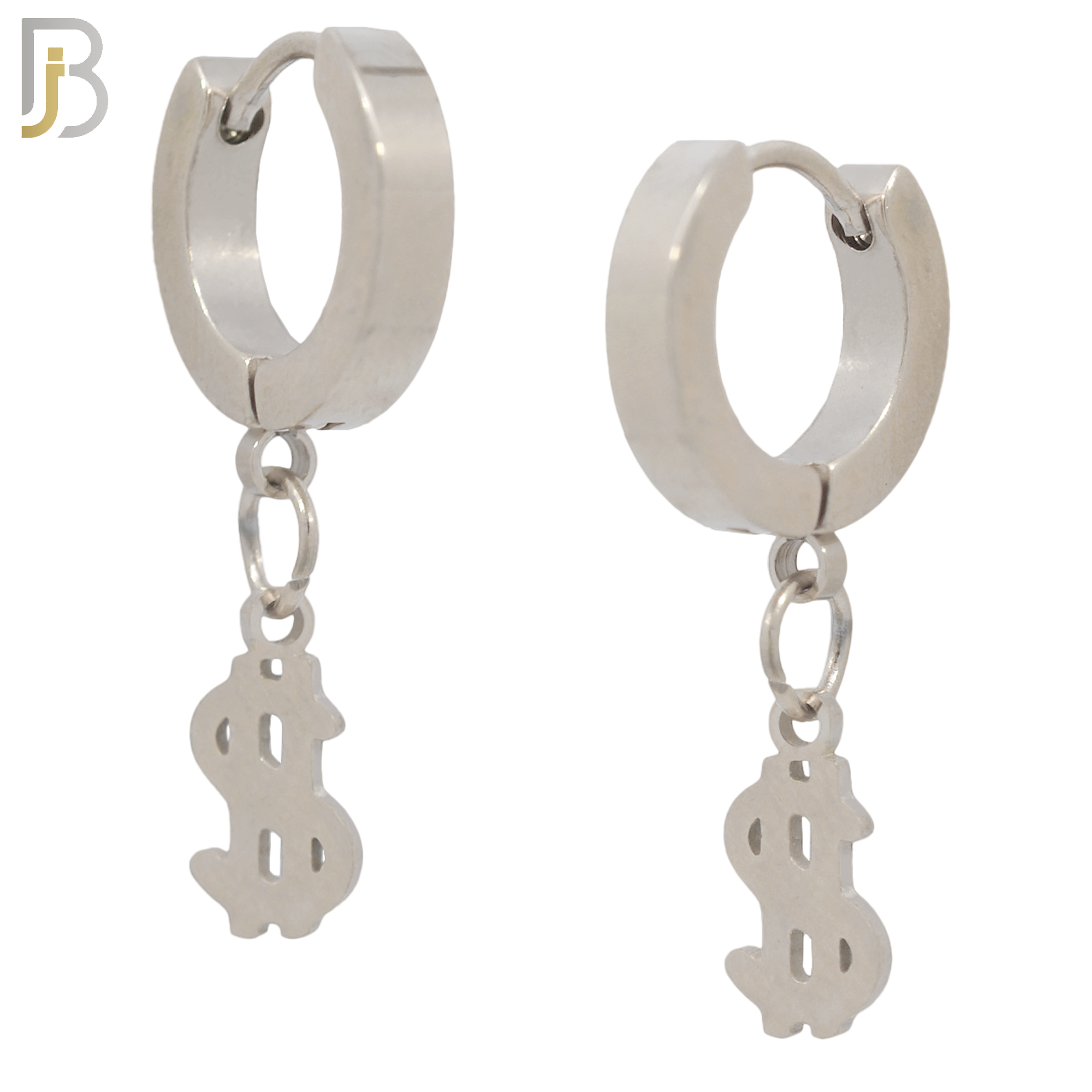 Stainless Steel Huggies Hoops Earrings with Dangle Dollar Sign