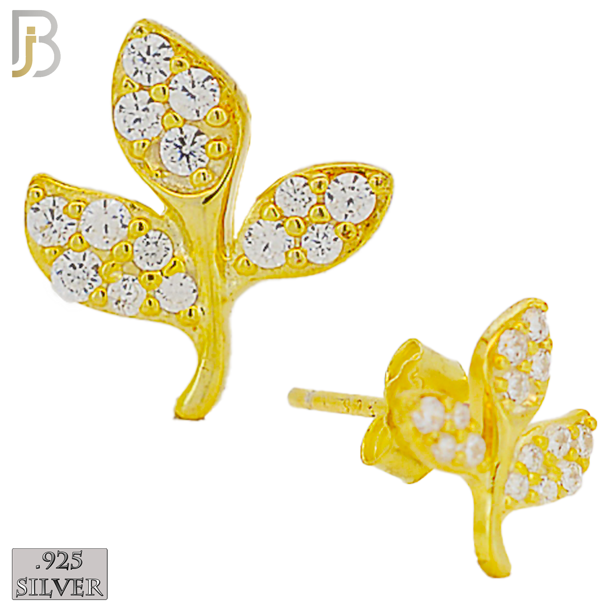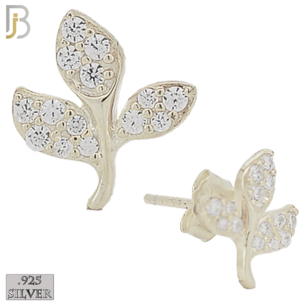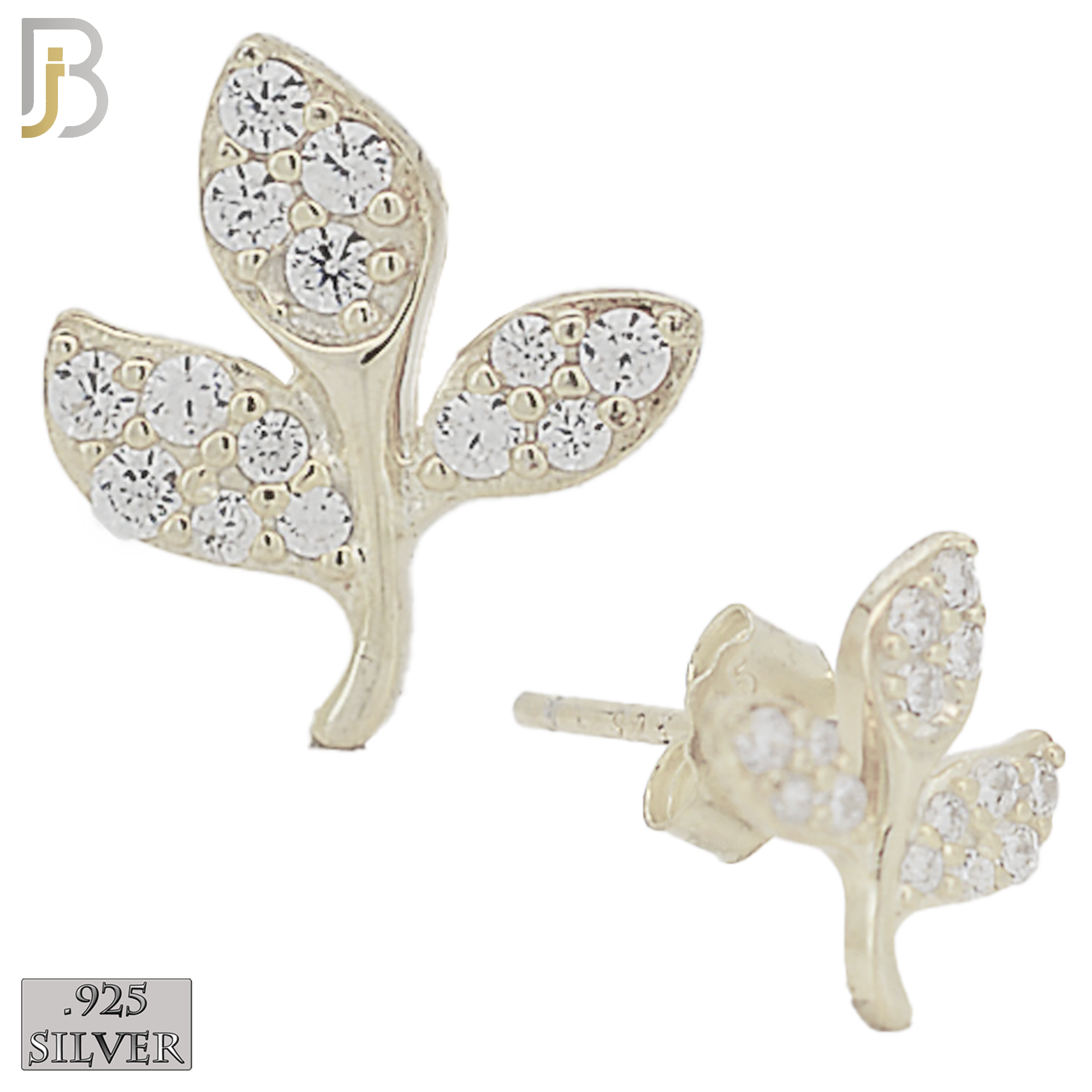 .925 Sterling Silver Leaf Design with Zircon Design Earring Stud