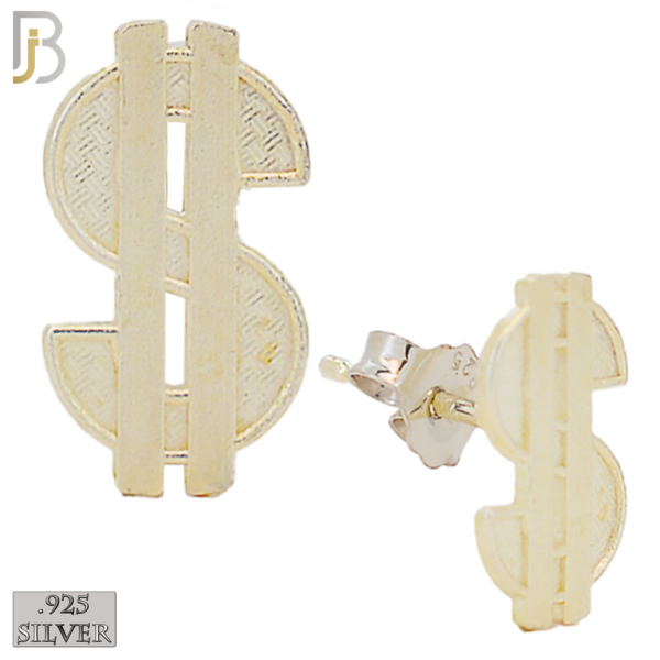 .925 Sterling Silver Dollar Sign Design Earring Stud