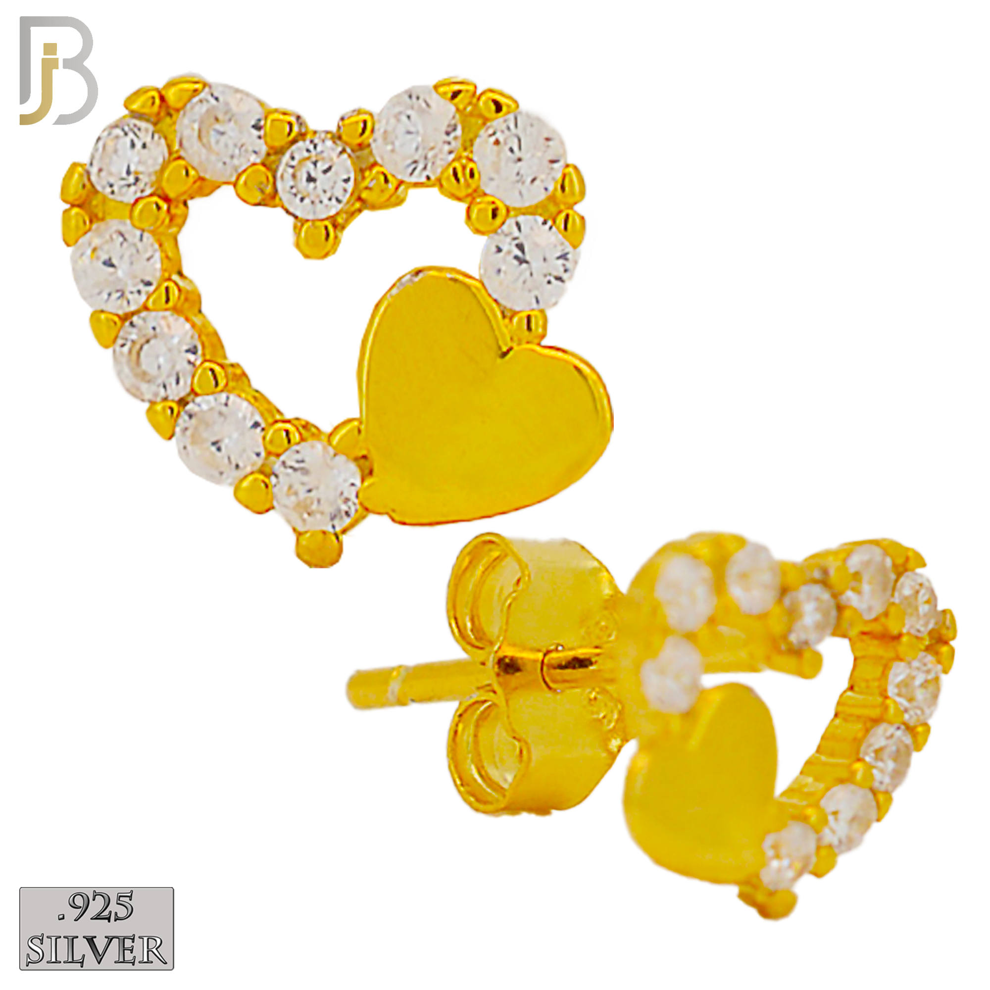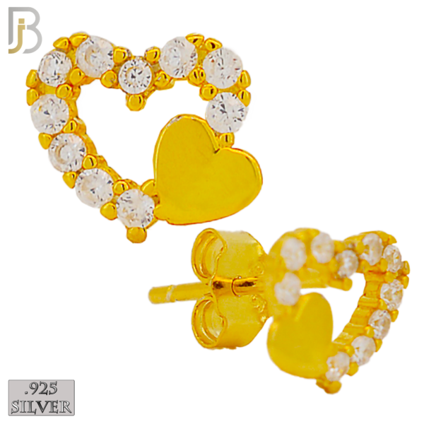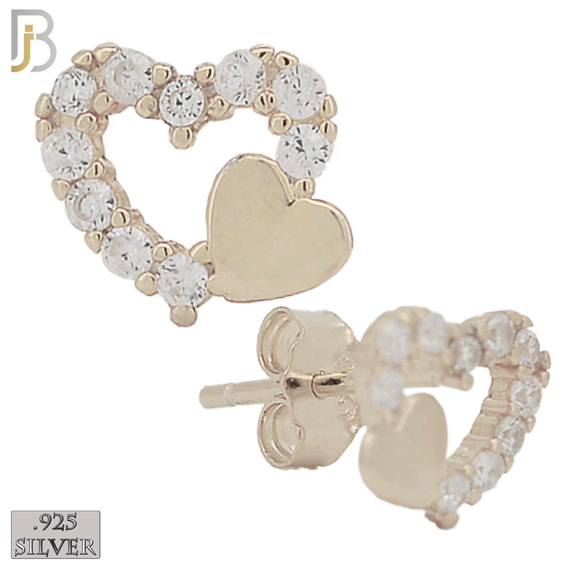 .925 Sterling Silver Double Heart with Zircon Design Earring Stud
