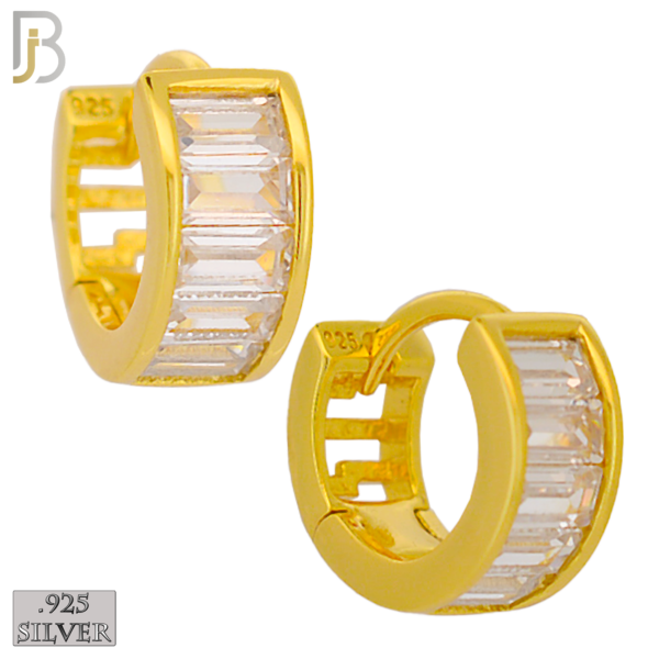 ES179 - .925 Sterling Silver Curve Design Huggies Earring with Baguette Zircon quantity