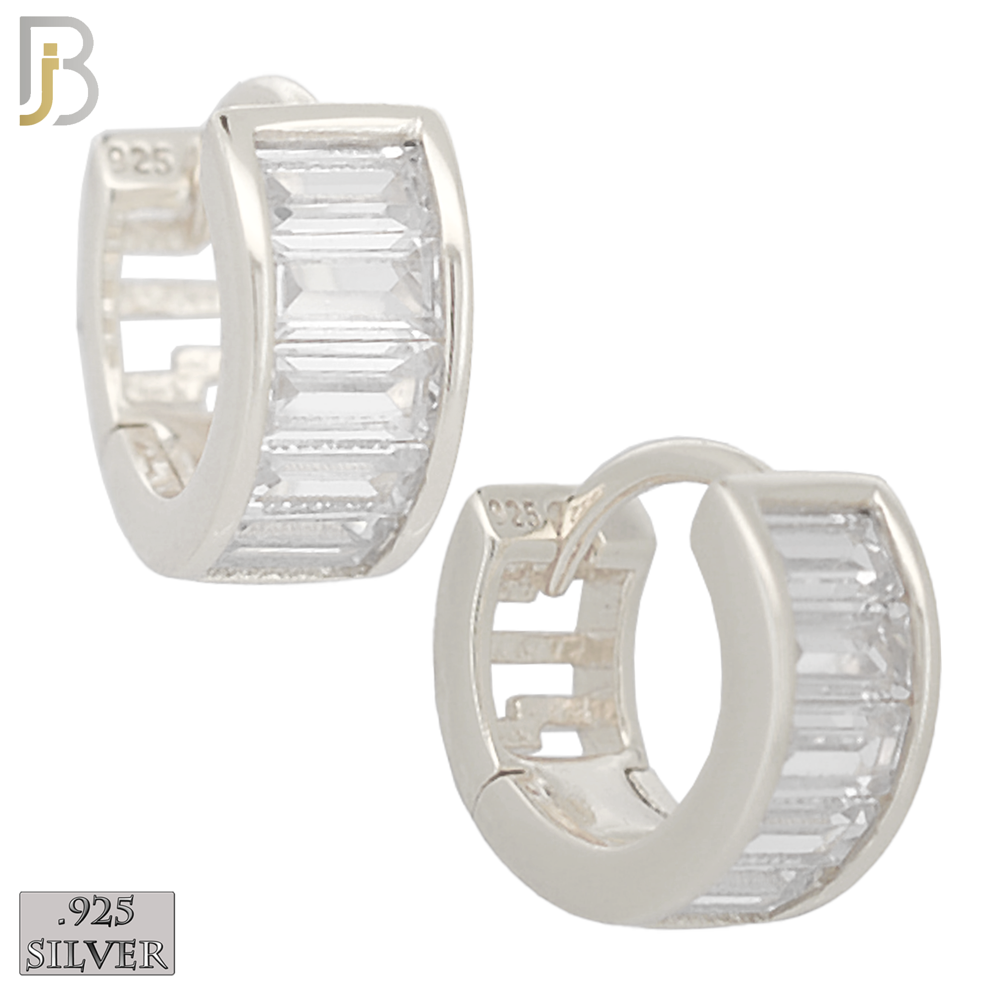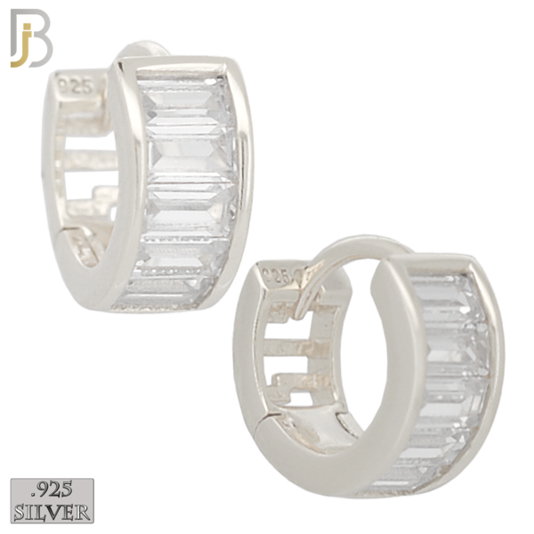 ES179 – .925 Sterling Silver Curve Design Huggies Earring with Baguette Zircon