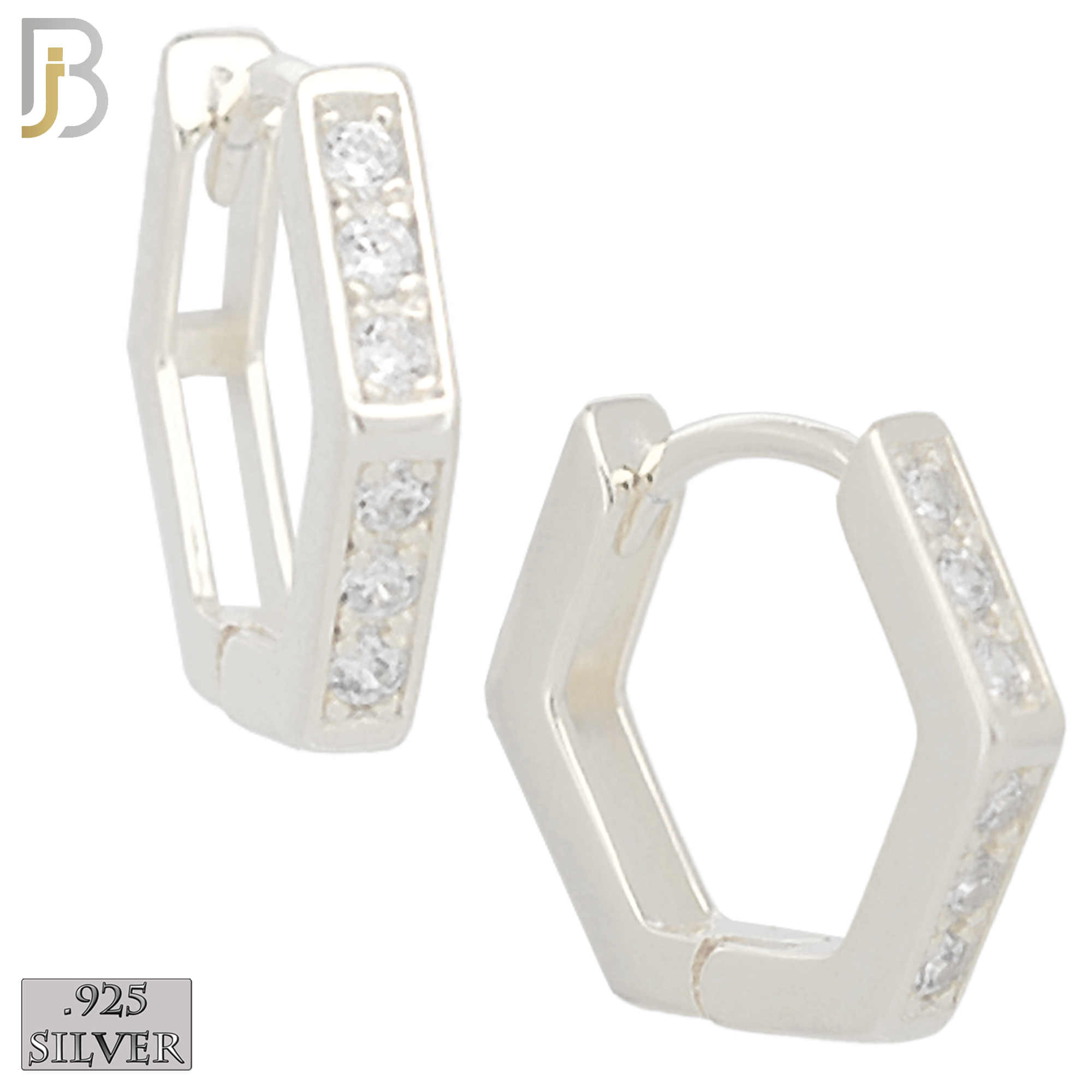 ES182 – .925 Sterling Silver Huggies Hexagon Shape with Zircon Clip On