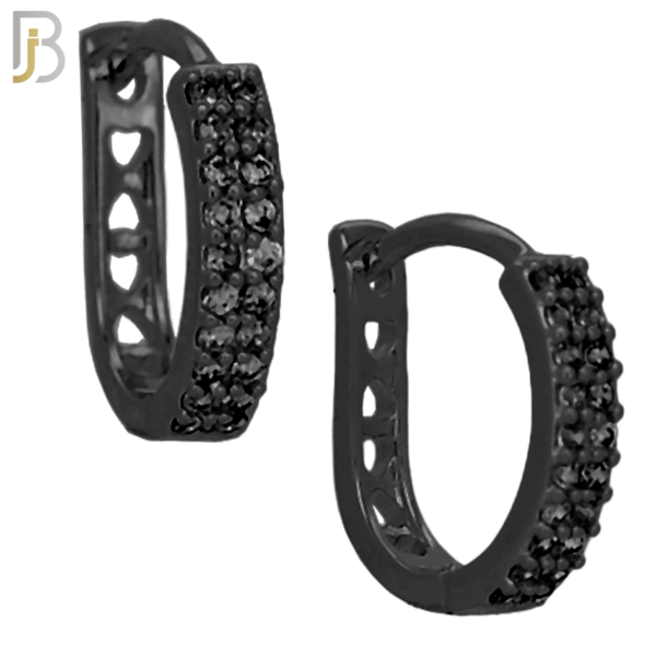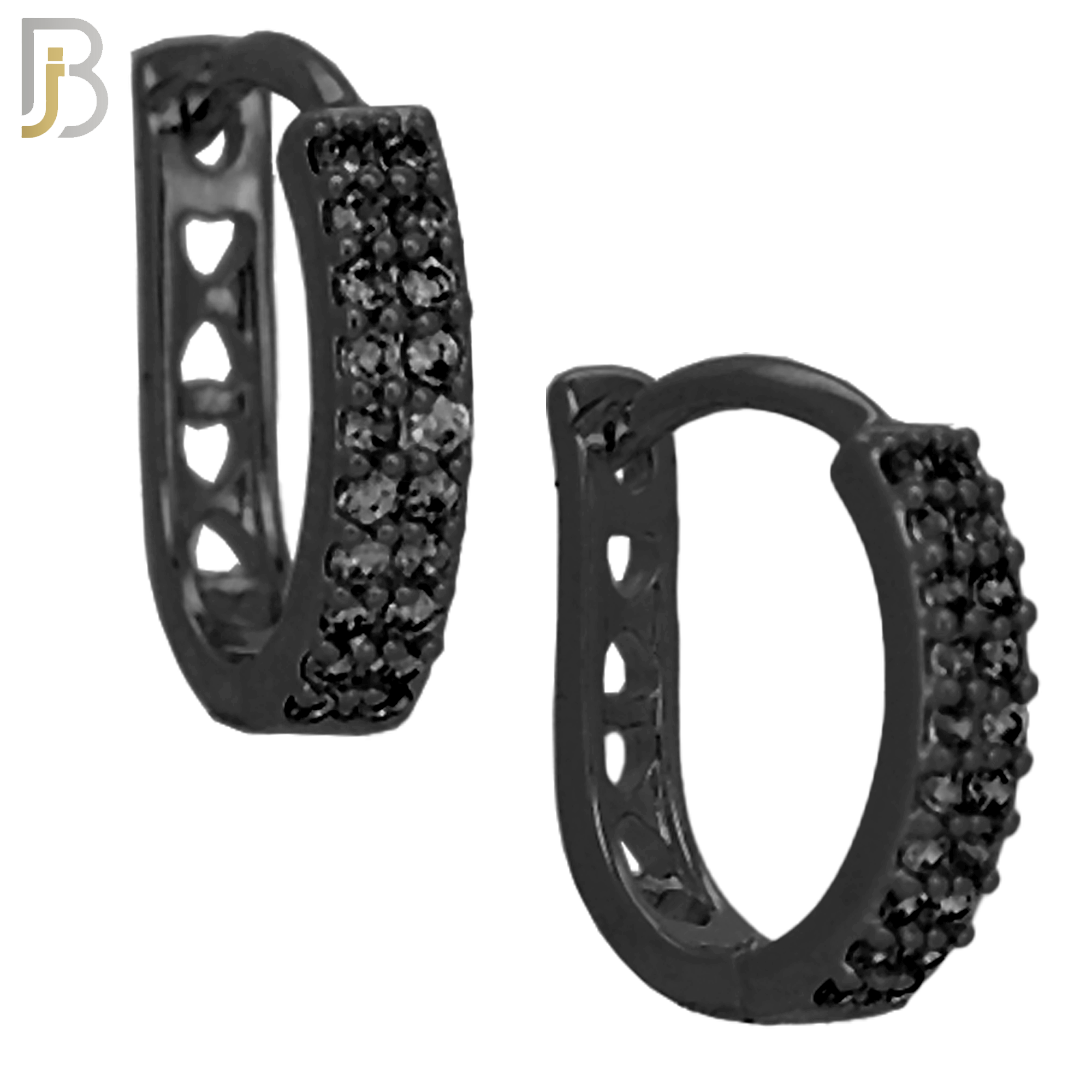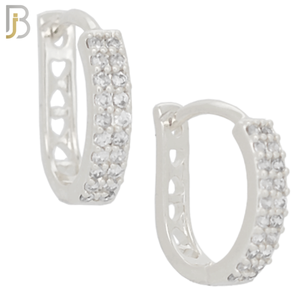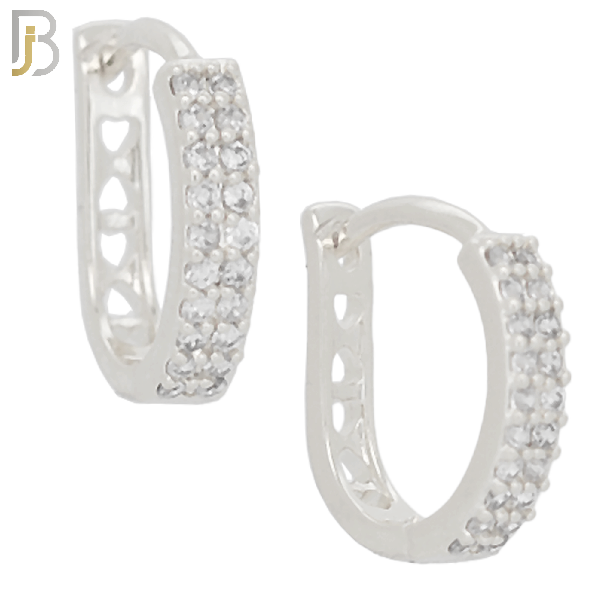 316L Surgical Steel Curved Hoop Earring with Two Rows of Zircon CZ on One Side and Hollow Heart Design on Back Side