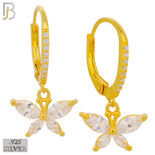 ES192 – .925 Sterling Silver Dangling Butterfly Marquise Zircon Design Huggies Clip On
